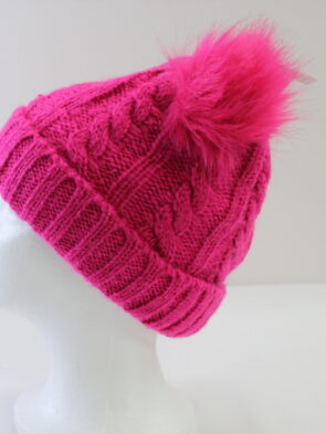 Unbranded Hot Pink Hat w 2 Fuzzy Ball and Lined