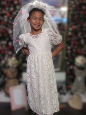 Thomas Short Sleeve Flower Girl Dress w/ Veil Size 12