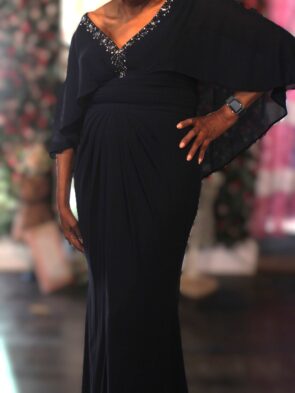 Alex Evenings Navy Gown w Built In Cape Size 12