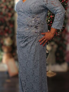 Alex Evening Light Blue LS Lace Gown Size 14