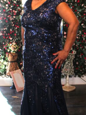Alex Evenings Blue Sequins Gown Size 14