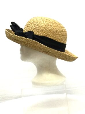 Unbranded Women Beige Hat w Black Bow and Straw Detail