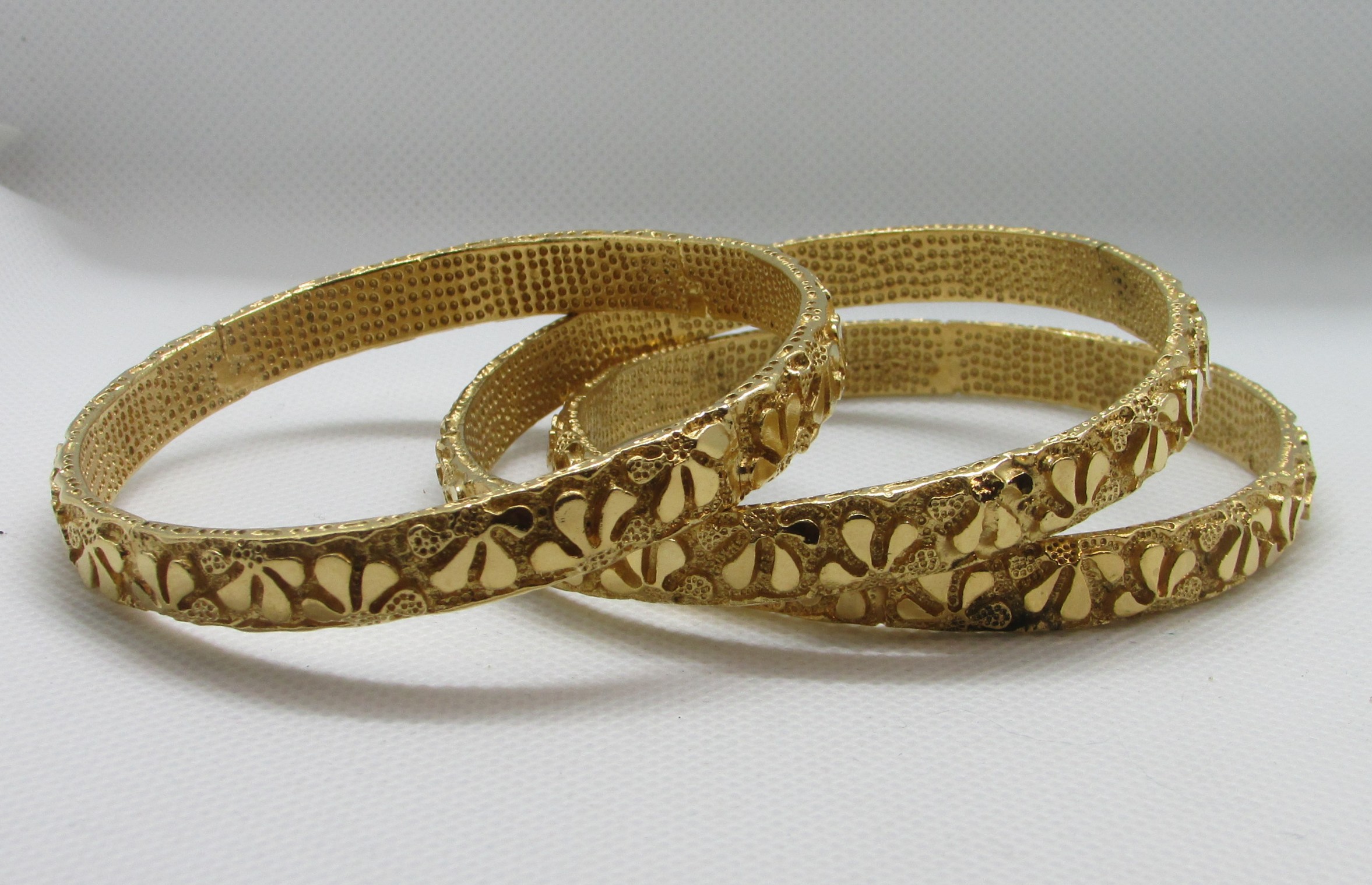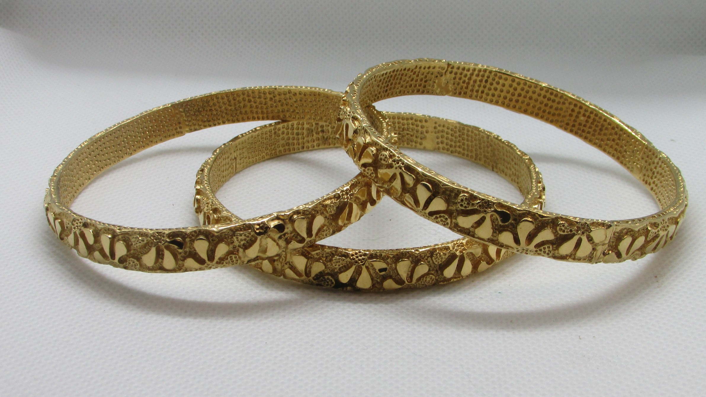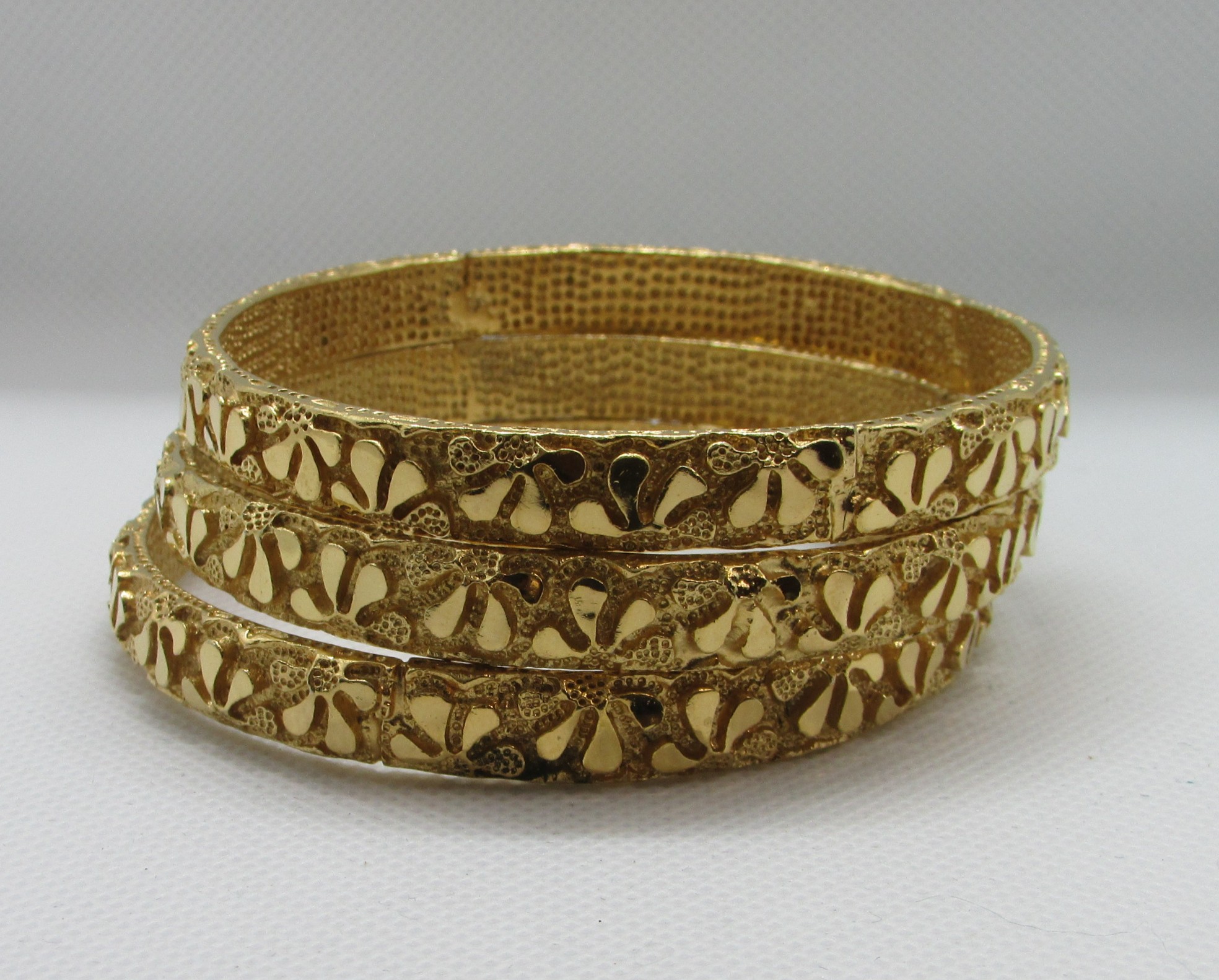 3 Gold Vintage Textured Bangle Bracelets