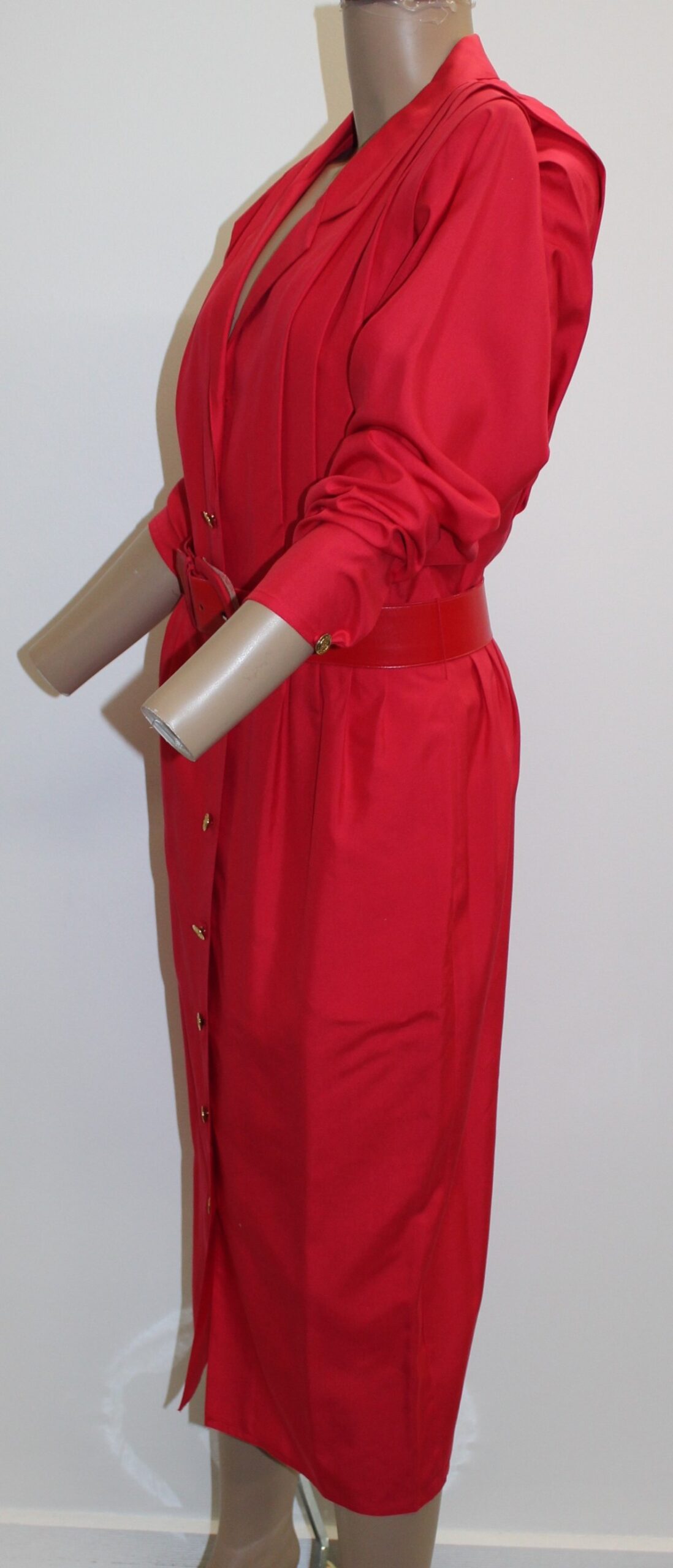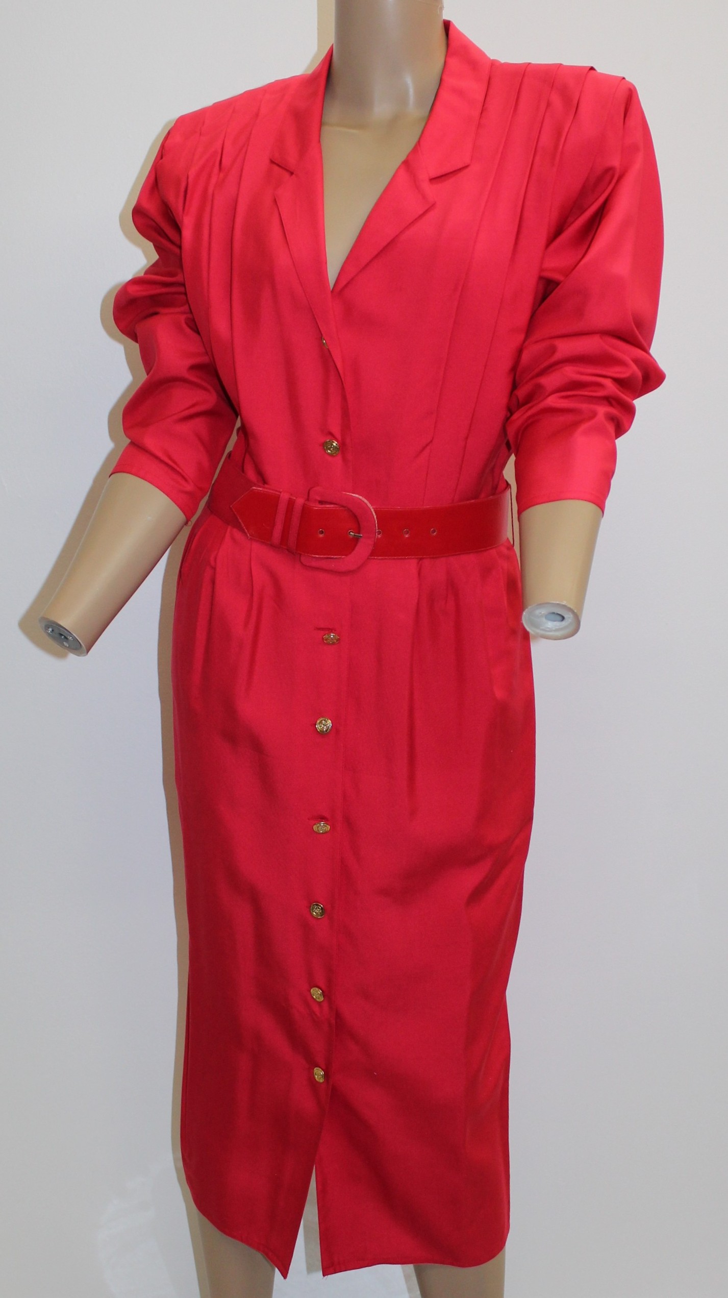 Argenti Vintage Red Front Button Down Dress w Belt Size 10