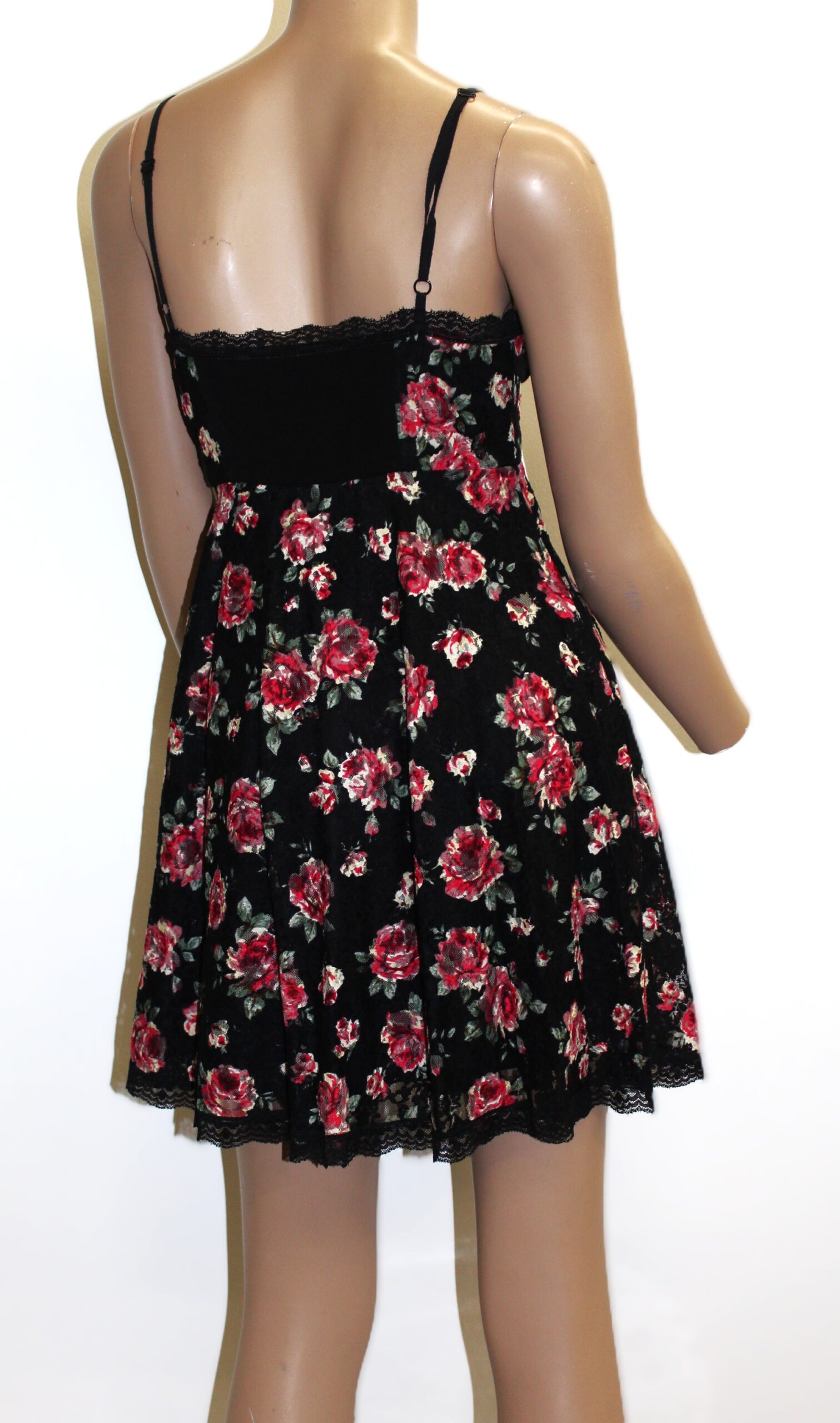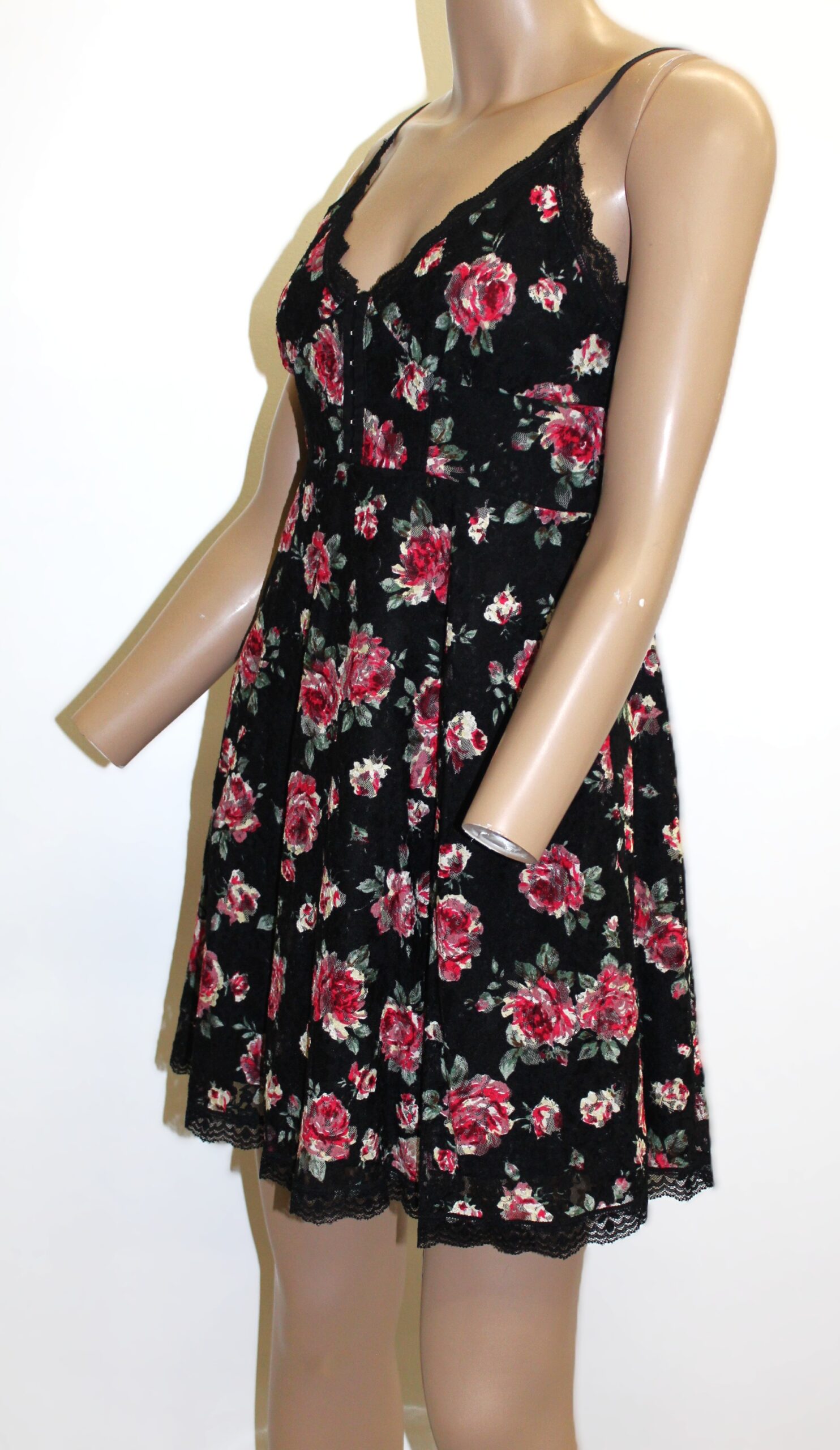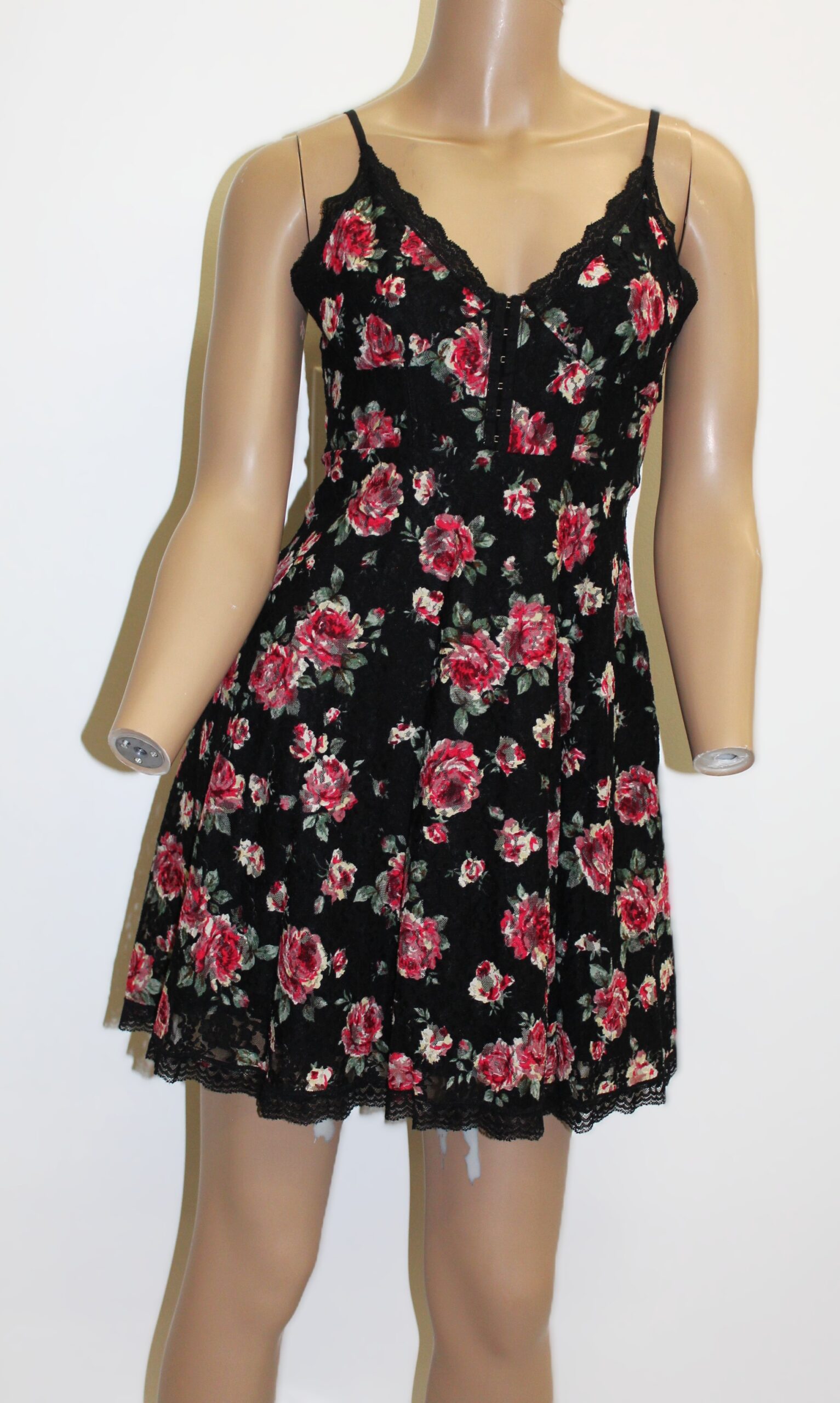 Betsey Johnson Vintage Black Floral Dress w Textetured Fabric Size S