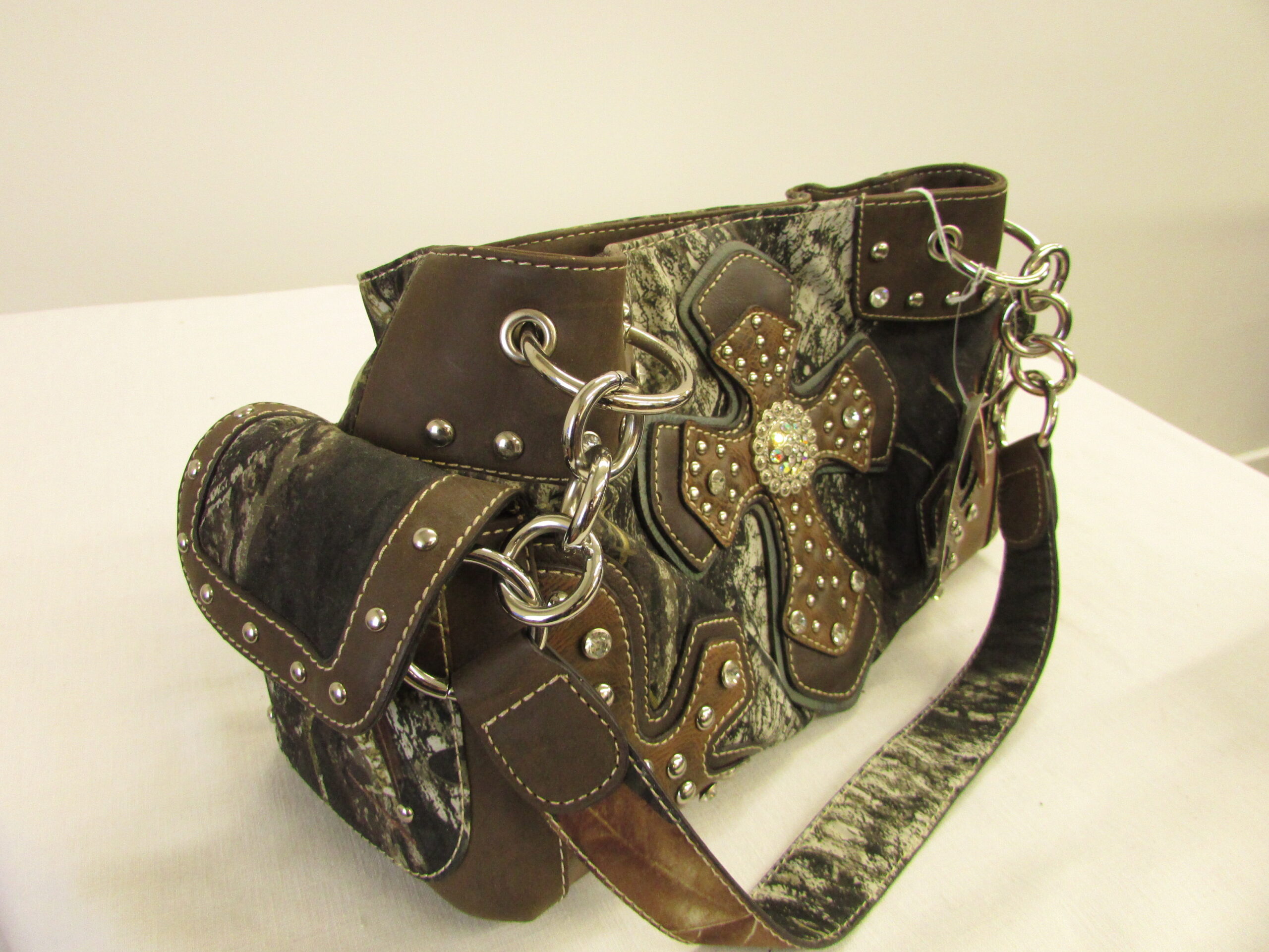 Magnetic Button Closure, silver hardware, Cross with gems outer design