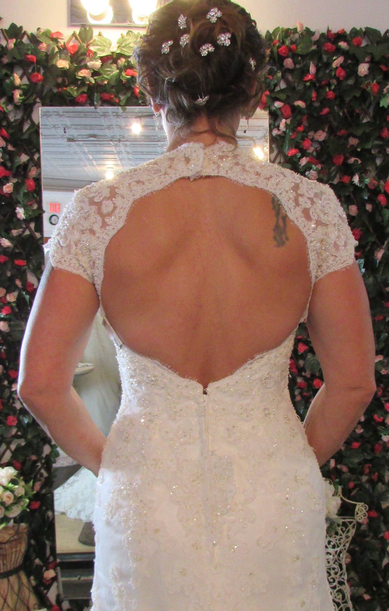 Ivory, Silver, Lace, Sleeveless, Zipper back Closure, Open Back,