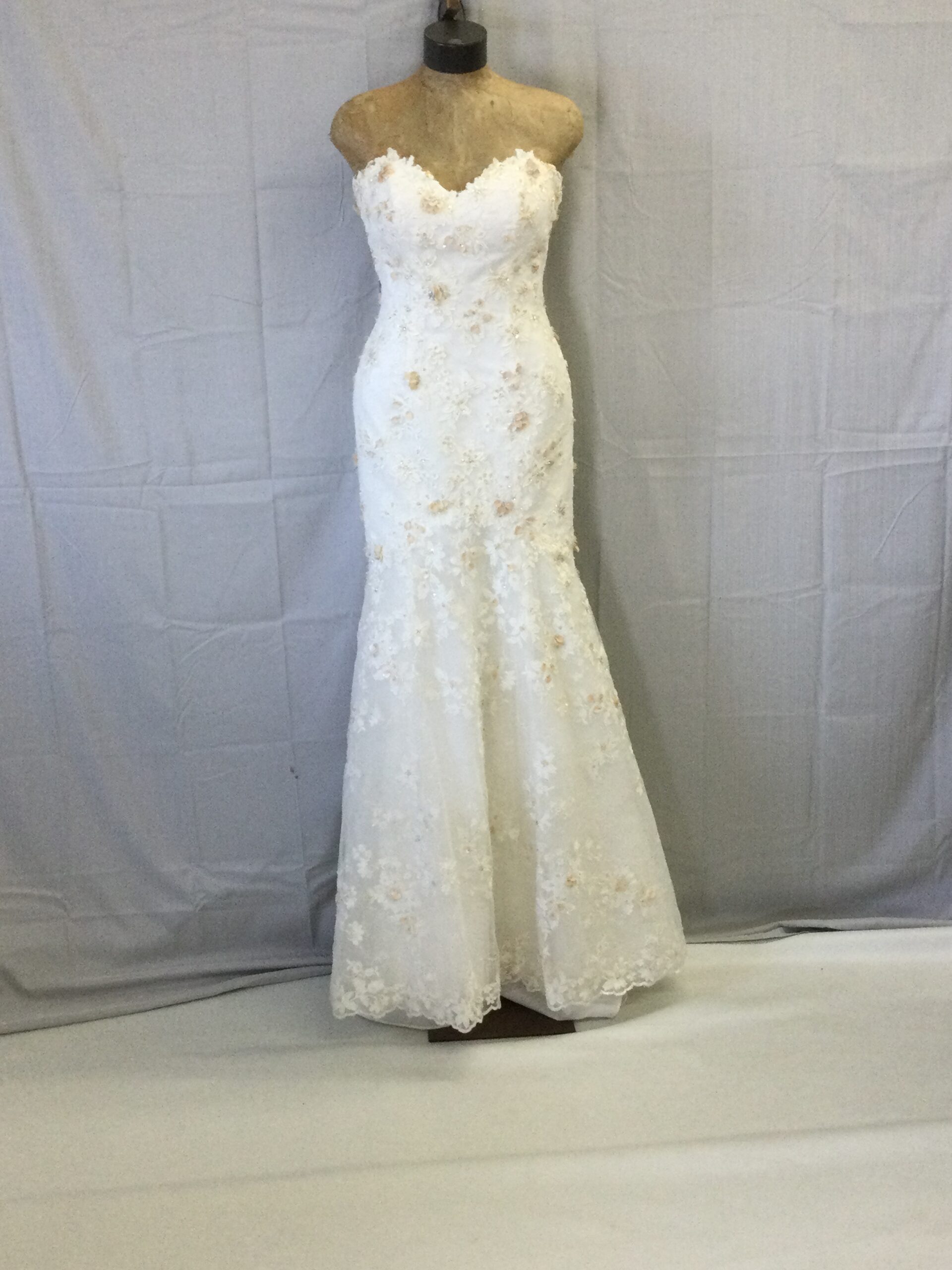 Casablanca White Lace Gown w Rasied Flowers Size 10