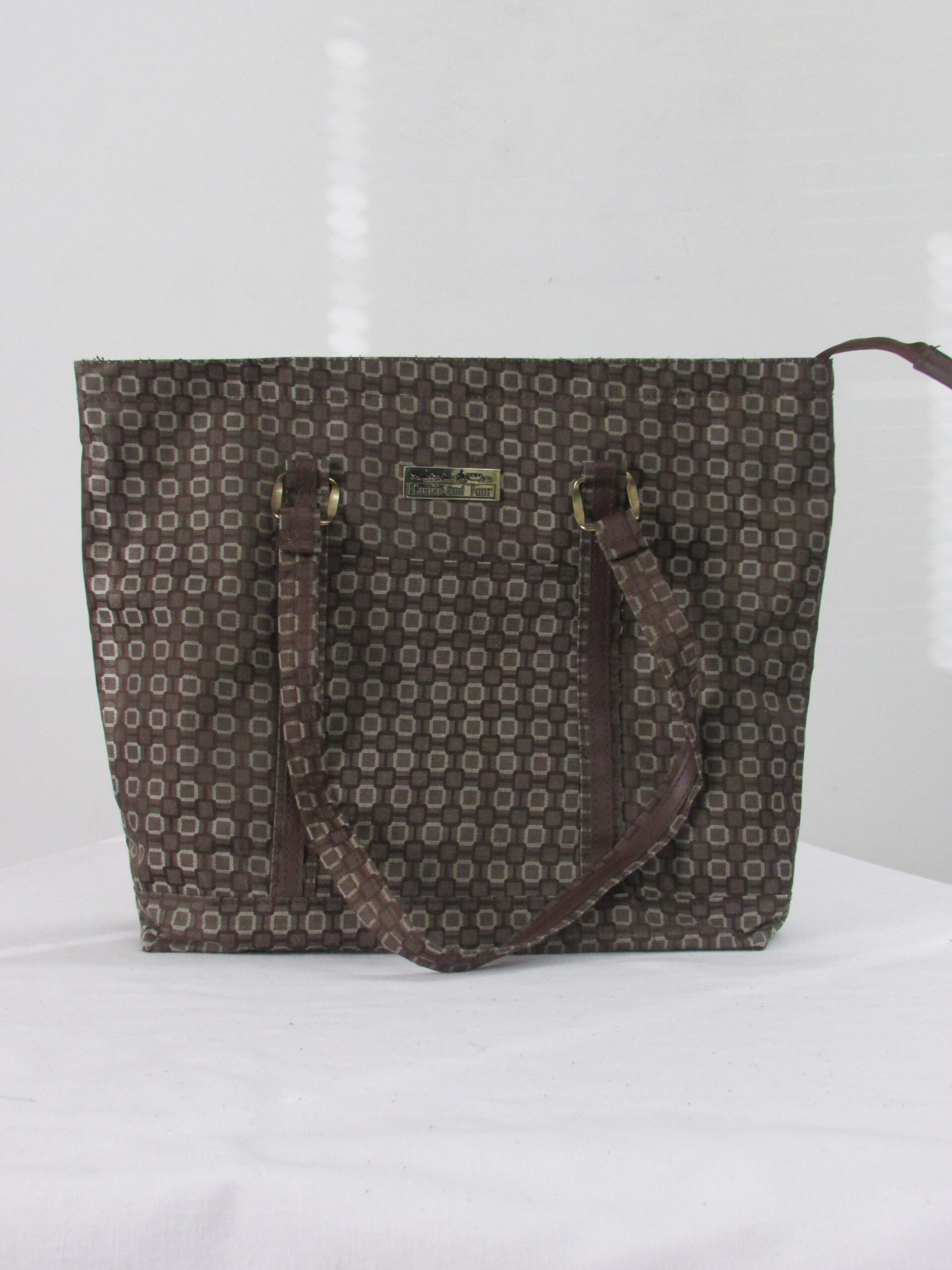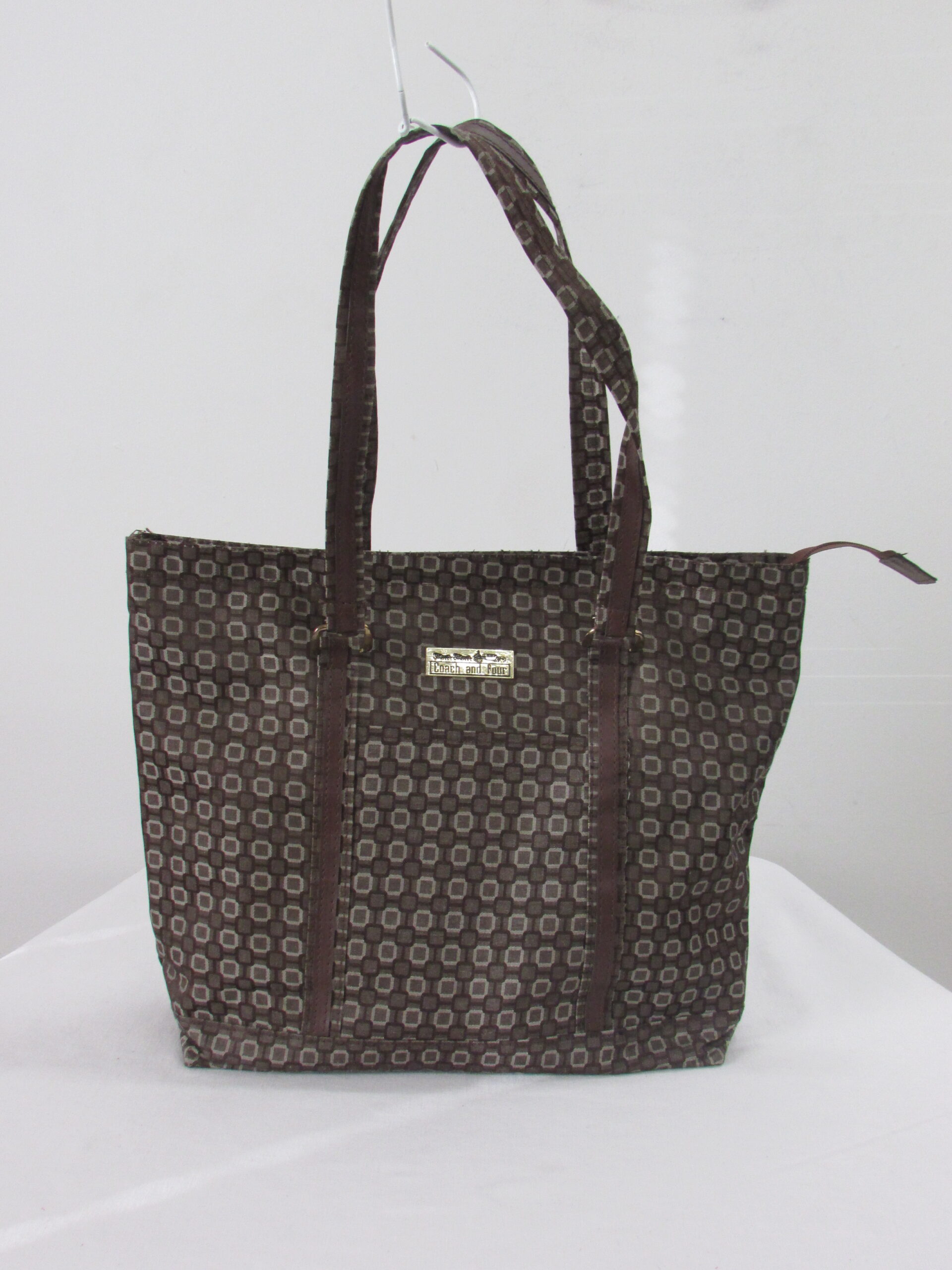 Coach and Four Brown Pattern Tote Bag Purse, Dual Handle
