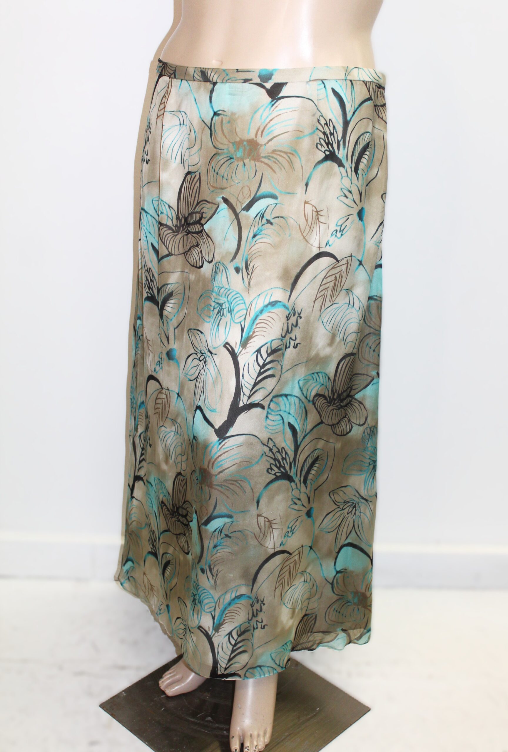 Dana Buchman Vintage Silk Floral Beige Maxi Skirt Size 20