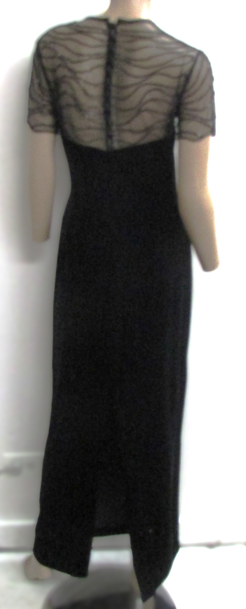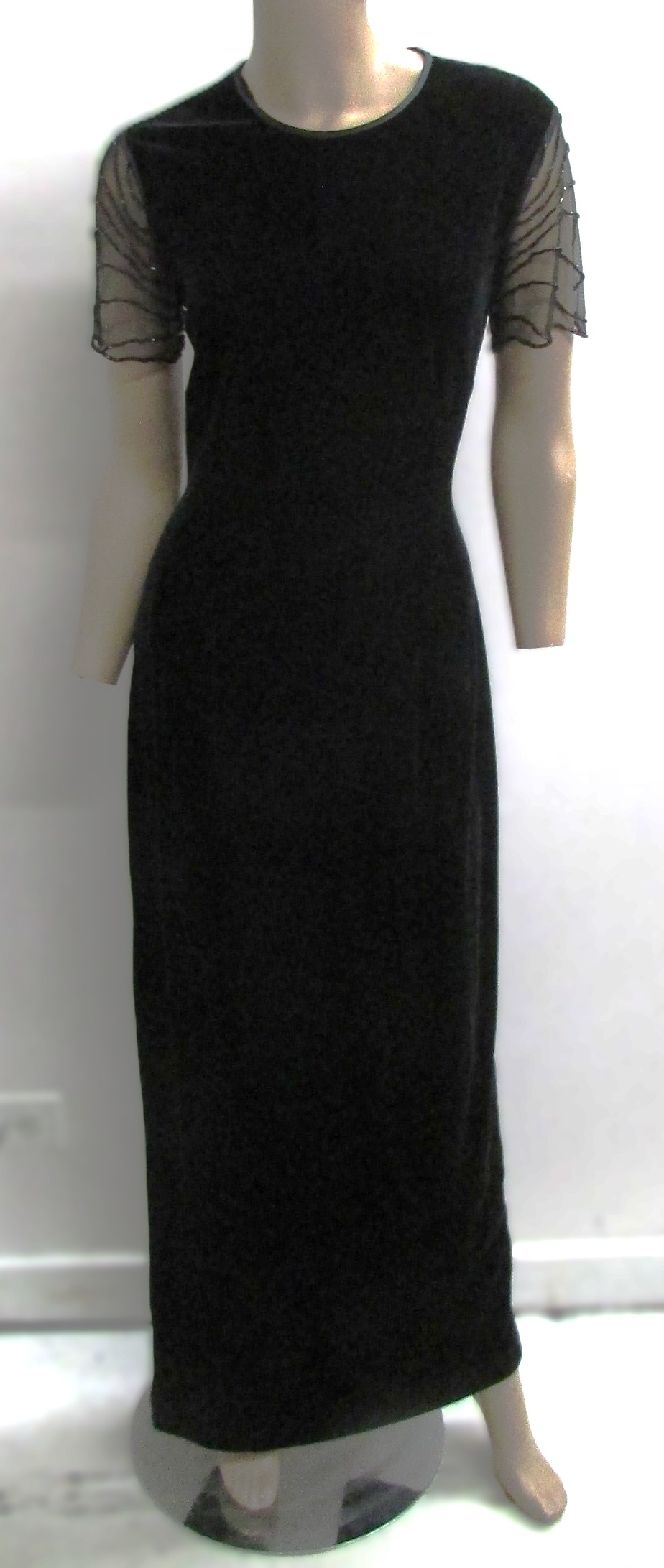 Donna Morgan Vintage Black Dress w Sheer Short Sleeves and Velvet Feel