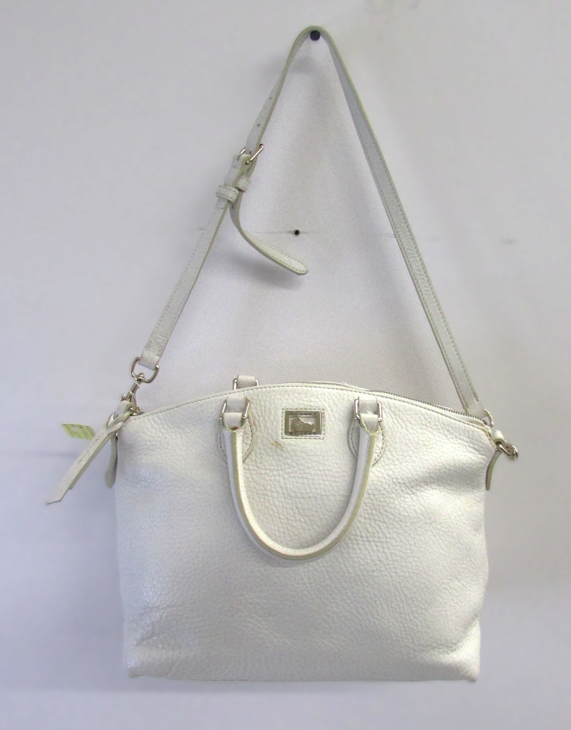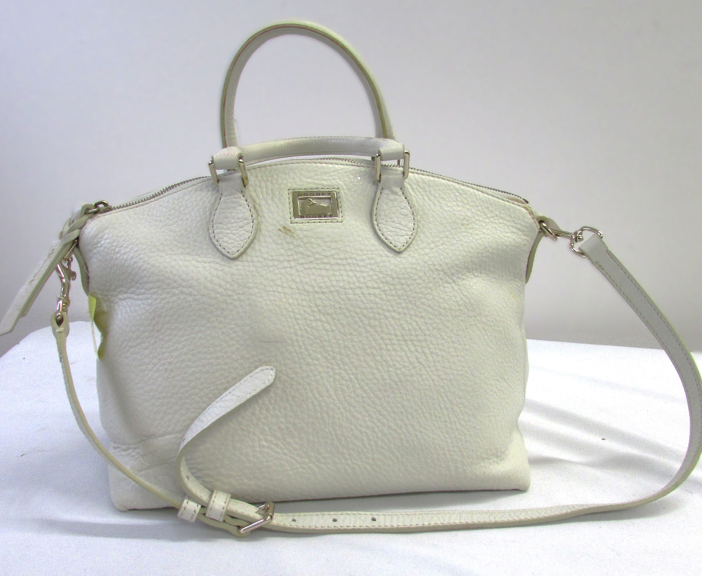 Dooney and Bourke Women Purse, Off White Pebbled Leather Tote Bag Purse w Dual Handle and Shoulder Strap