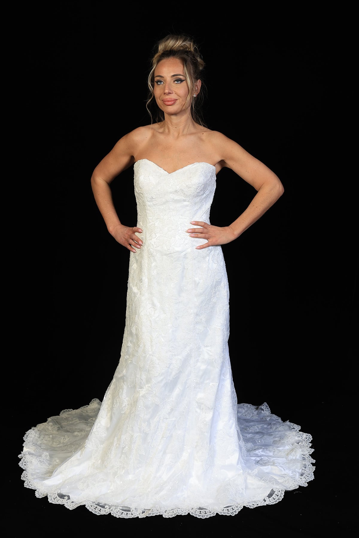 Stella York White Floral Lace Jeweled Bridal Gown Size 14