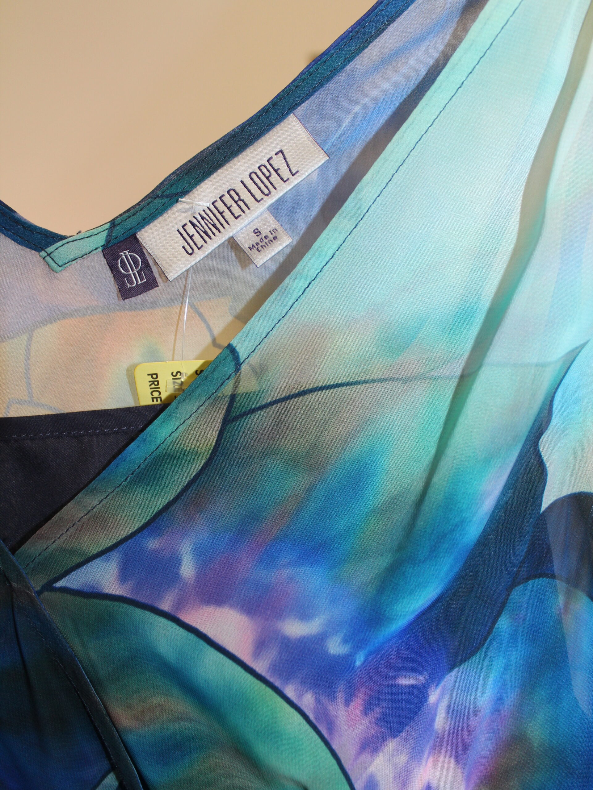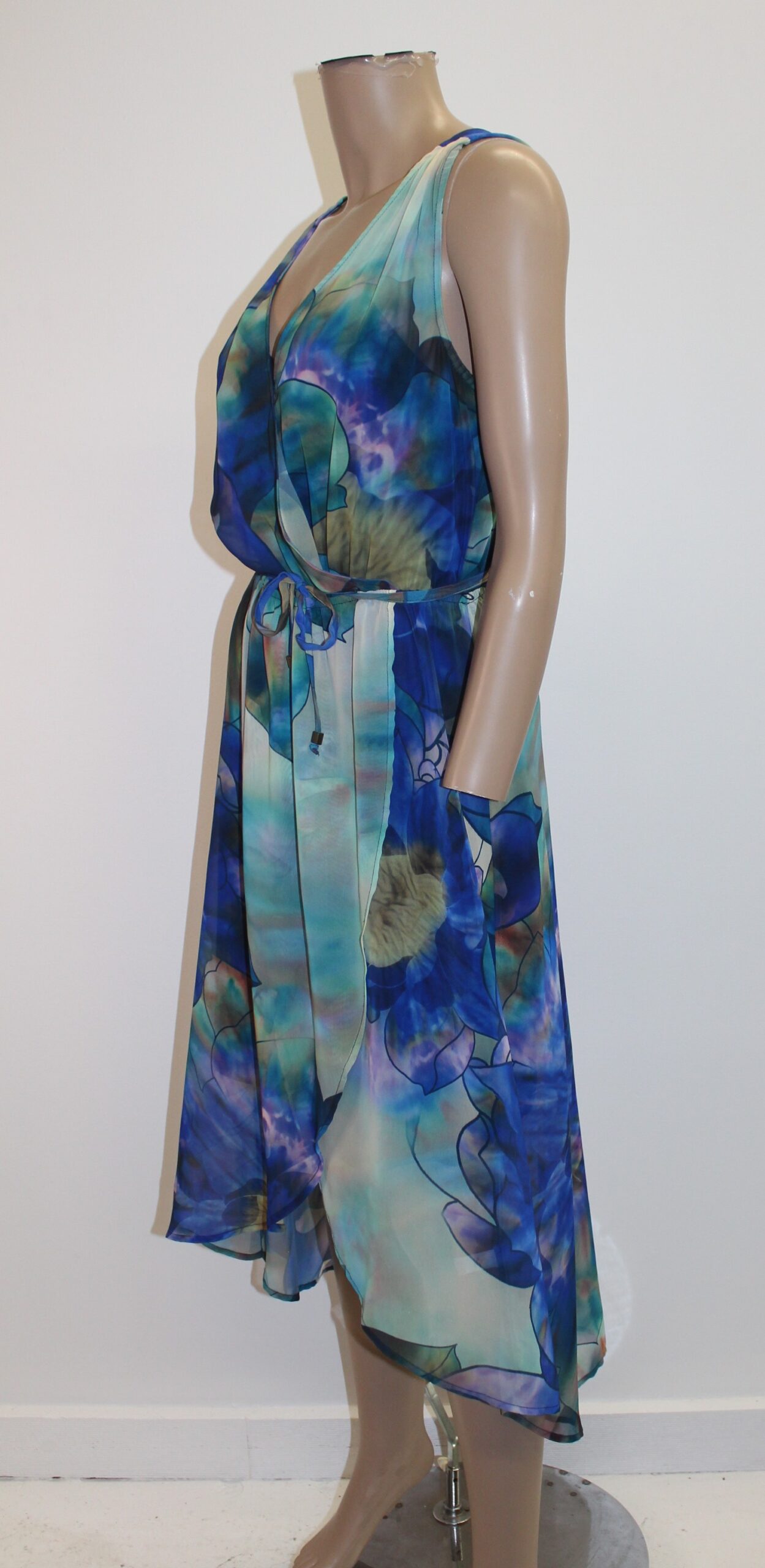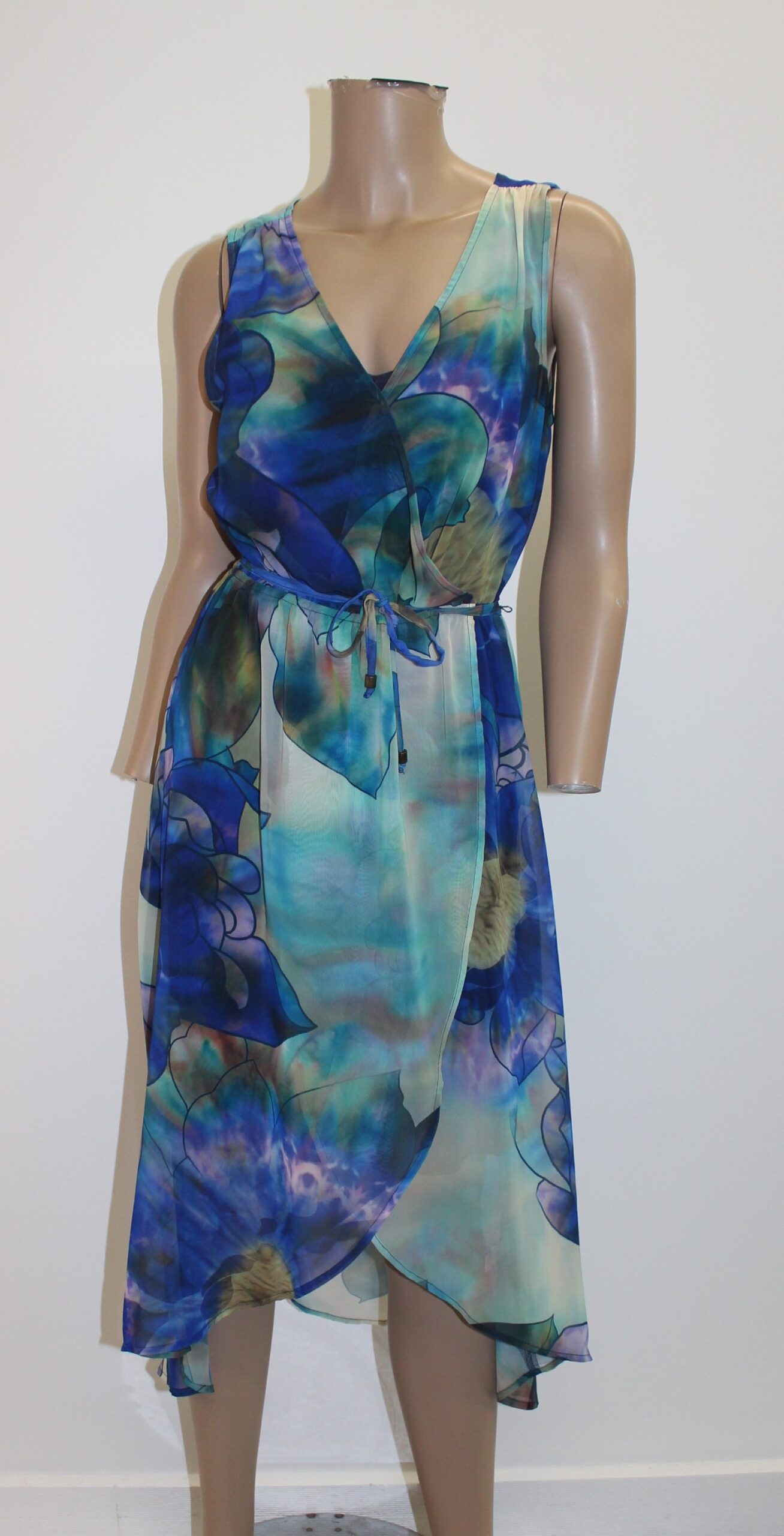 Jennifer Lopez Multi Color Sheer Hi/Lo Dress w Belt Size S
