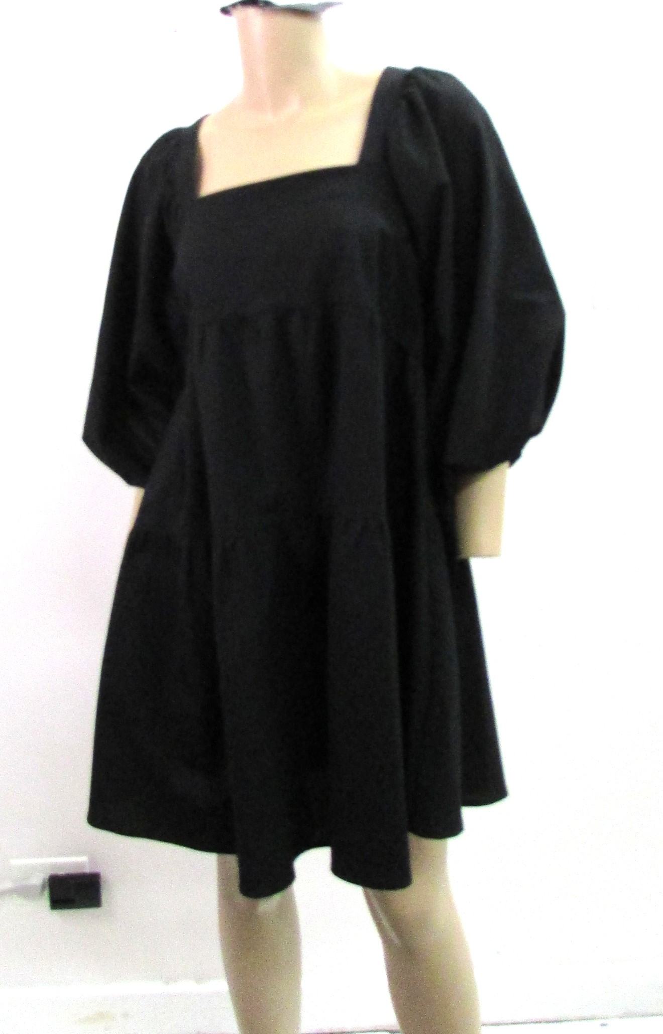 Johnny Bocca Short Black Dress w Balloon Sleeves Size L