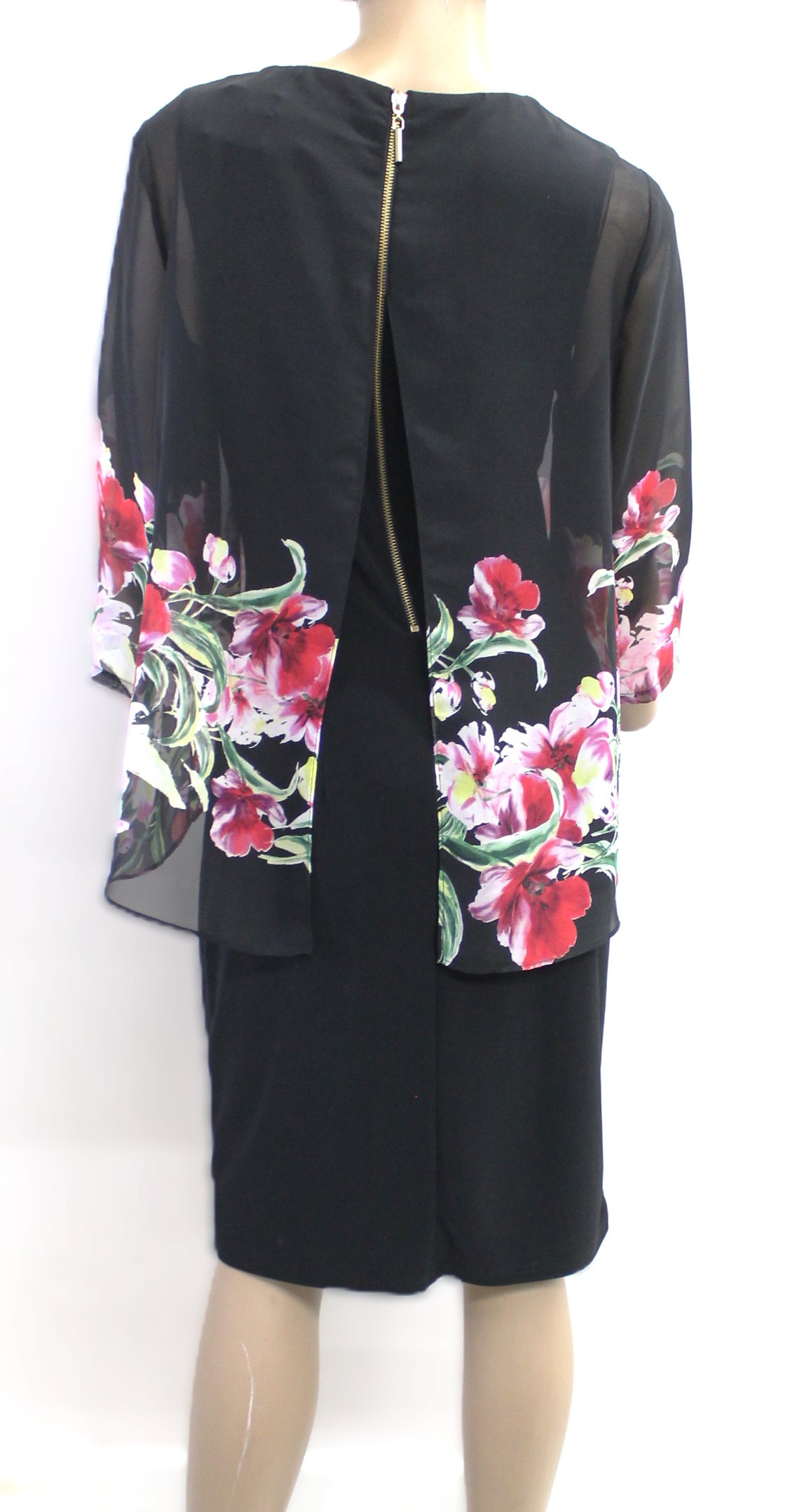 See Through Floral Top, Collarless, Back Zipper, Unlined