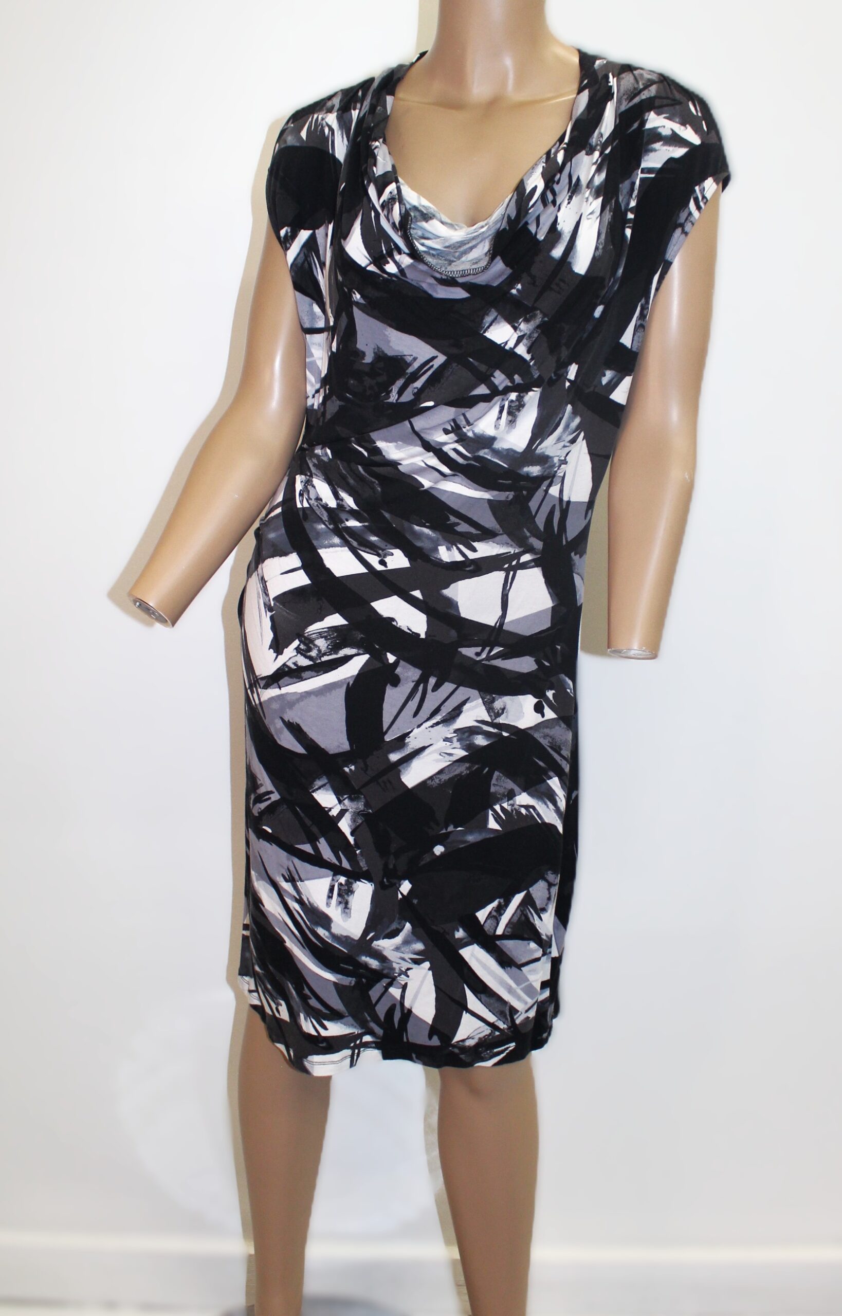 Michael Kors Vintage Cowl Neck Sleeveless Dress w Abstract Print Size M