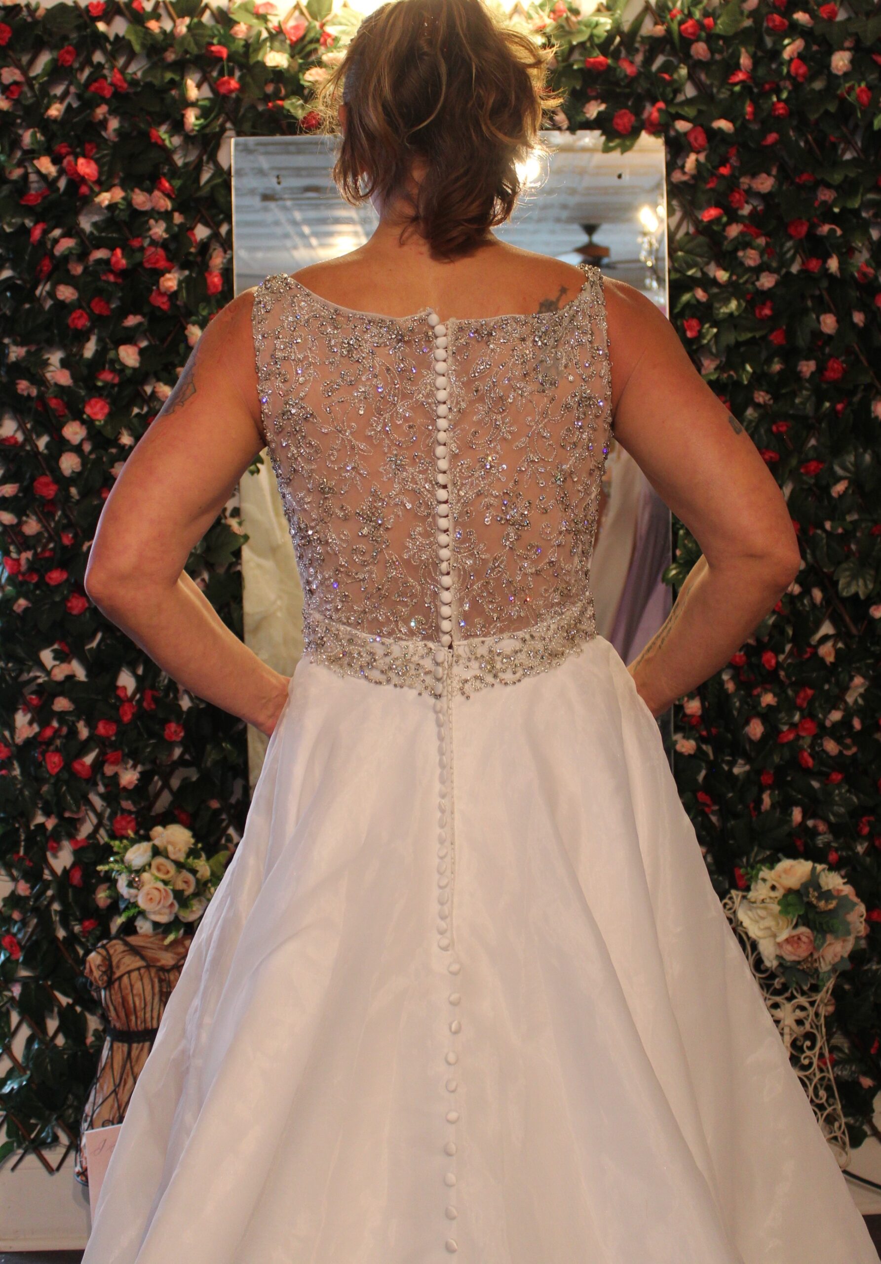 White w Silver, Zipper and button back closure, V-neckline, Sleeveless, Beaded mesh top All Measurements Upon Request, ?Your satisfaction is our #1 Concern. All our clothing is in good condition, but as most of our clothing is pre-owned, they show normal signs of wear or are in like new condition. We do look over each piece but may inevitably overlook things. If you have received your items(s) and find that there is missing information such as defect, please contact us as soon as possible.?