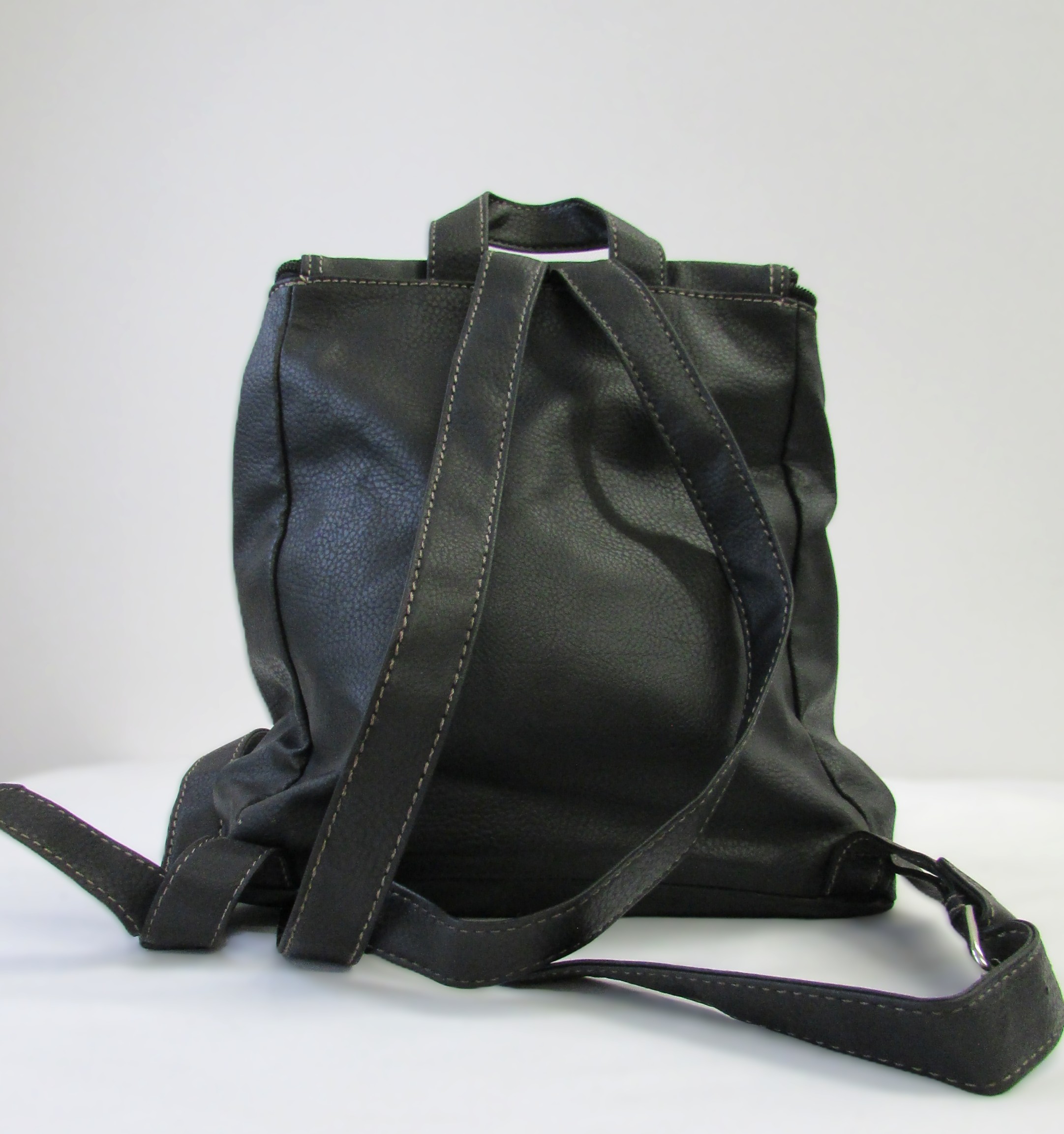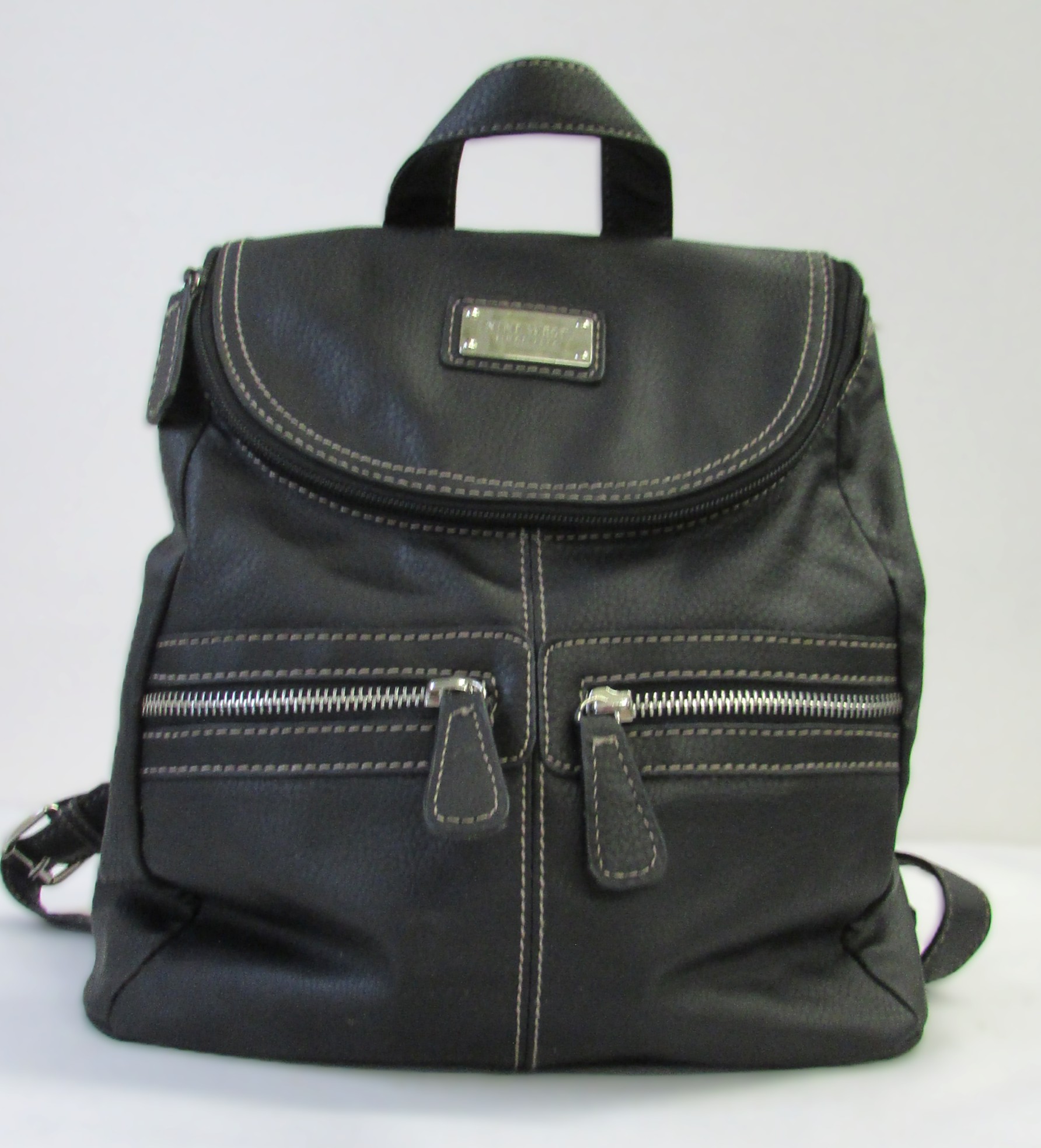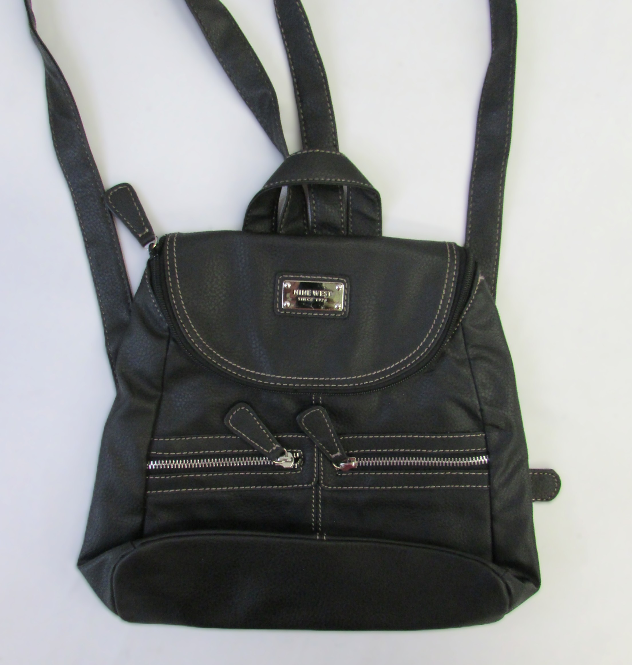 Nine West Black PVC Backpack w Heavy Stitching