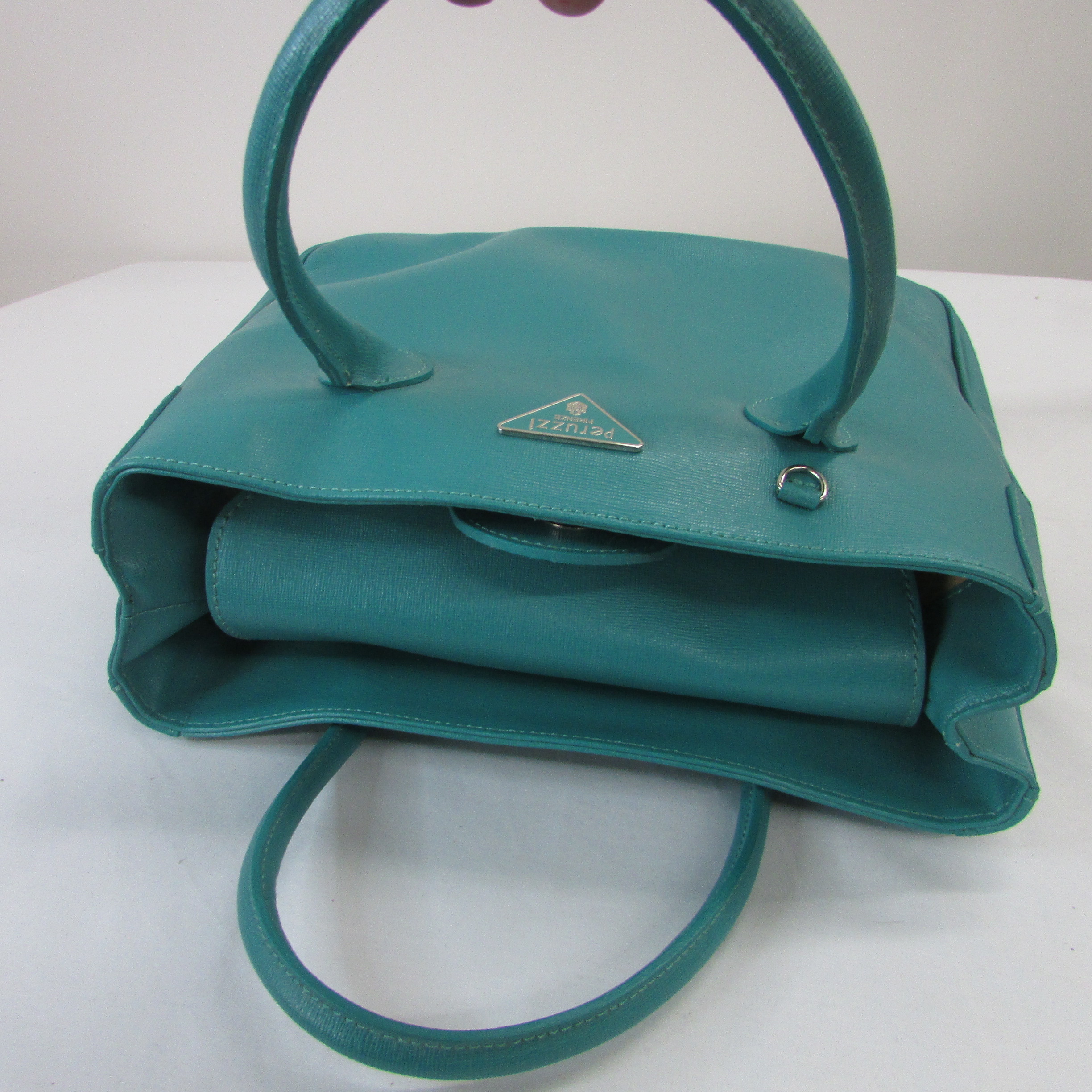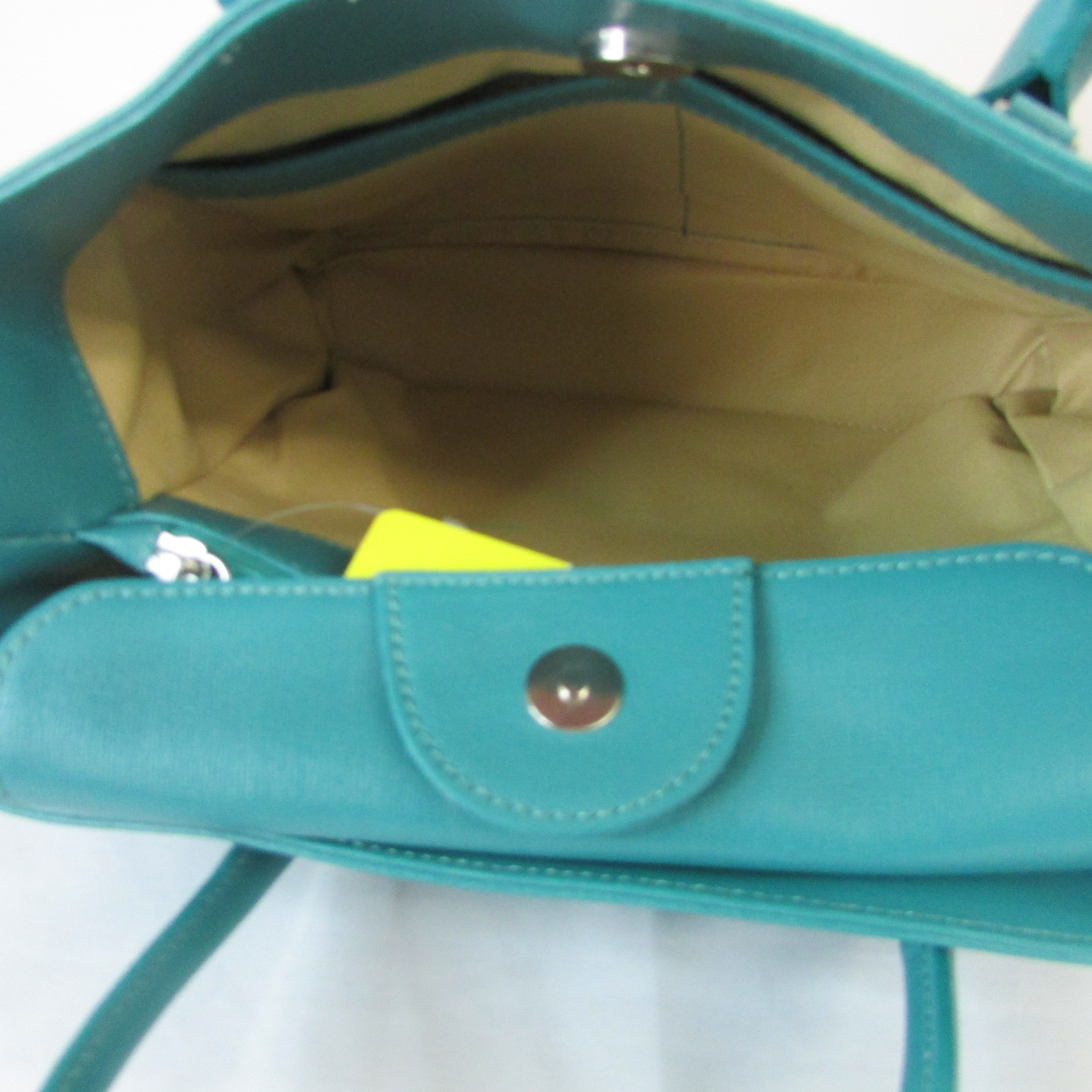 Button Flap closure, Internal pockets, Silver studs at bottom, Internal pockets