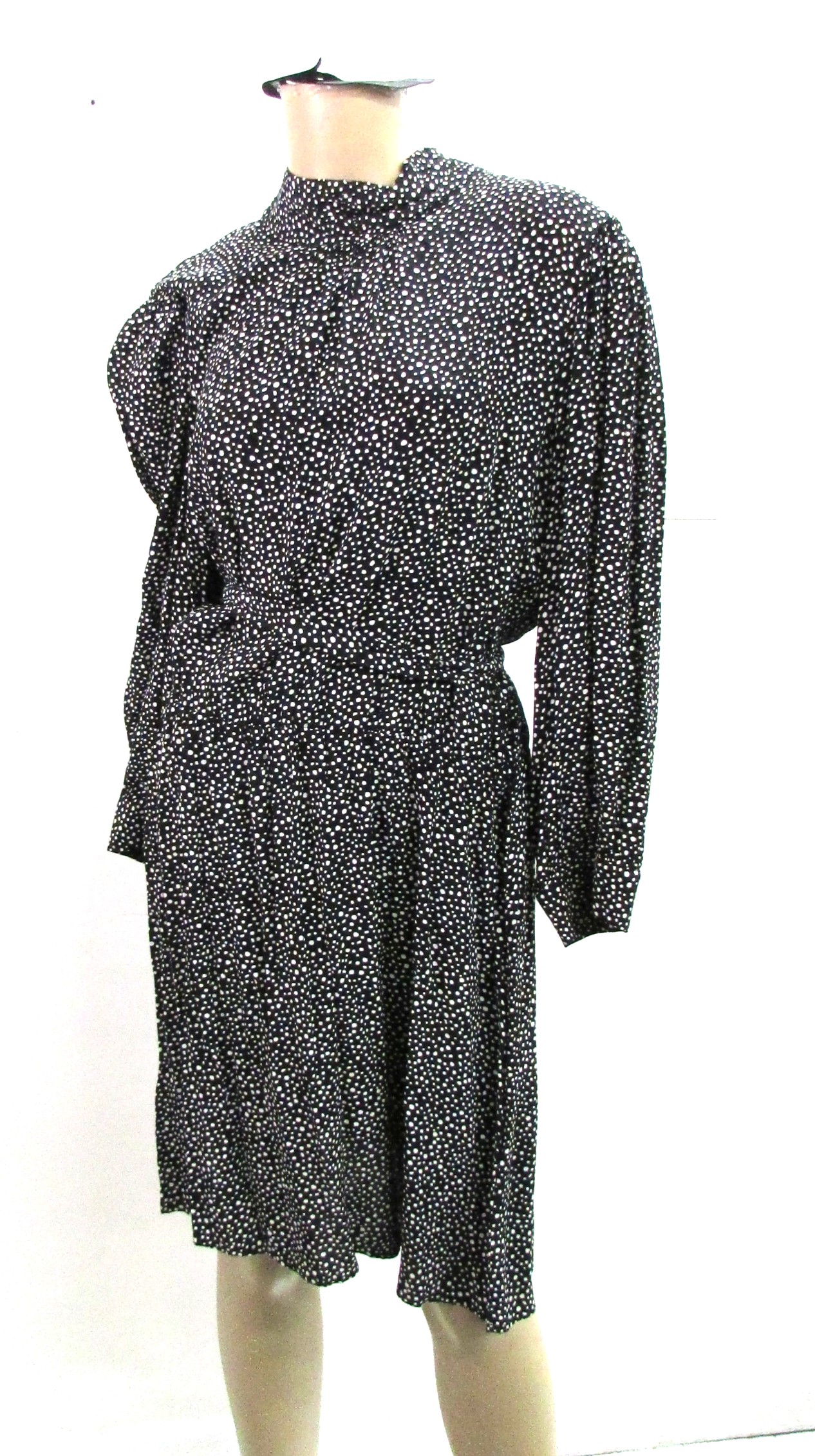 Long sleeve, Mock Collar, Pleated, Belt w belt loop, 2 button back teardrop closure