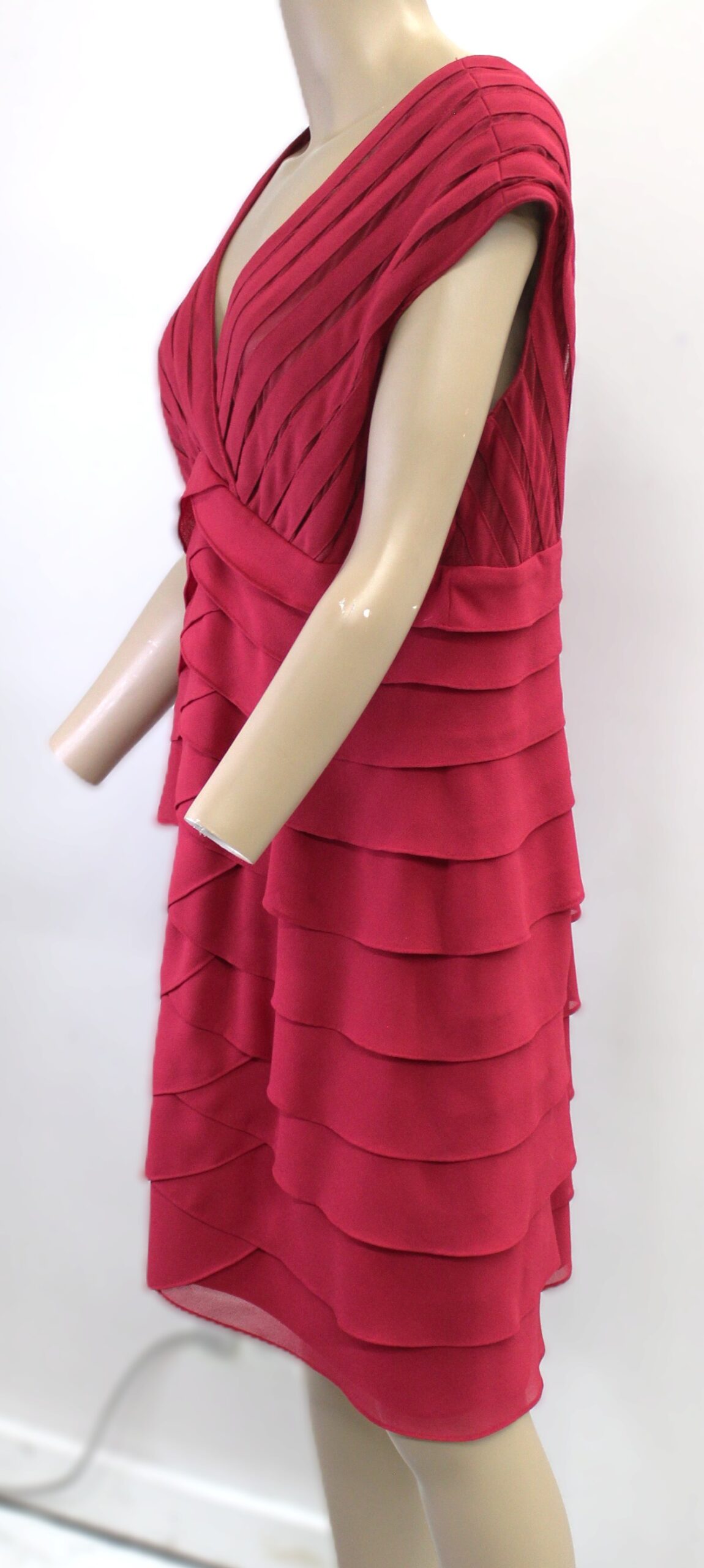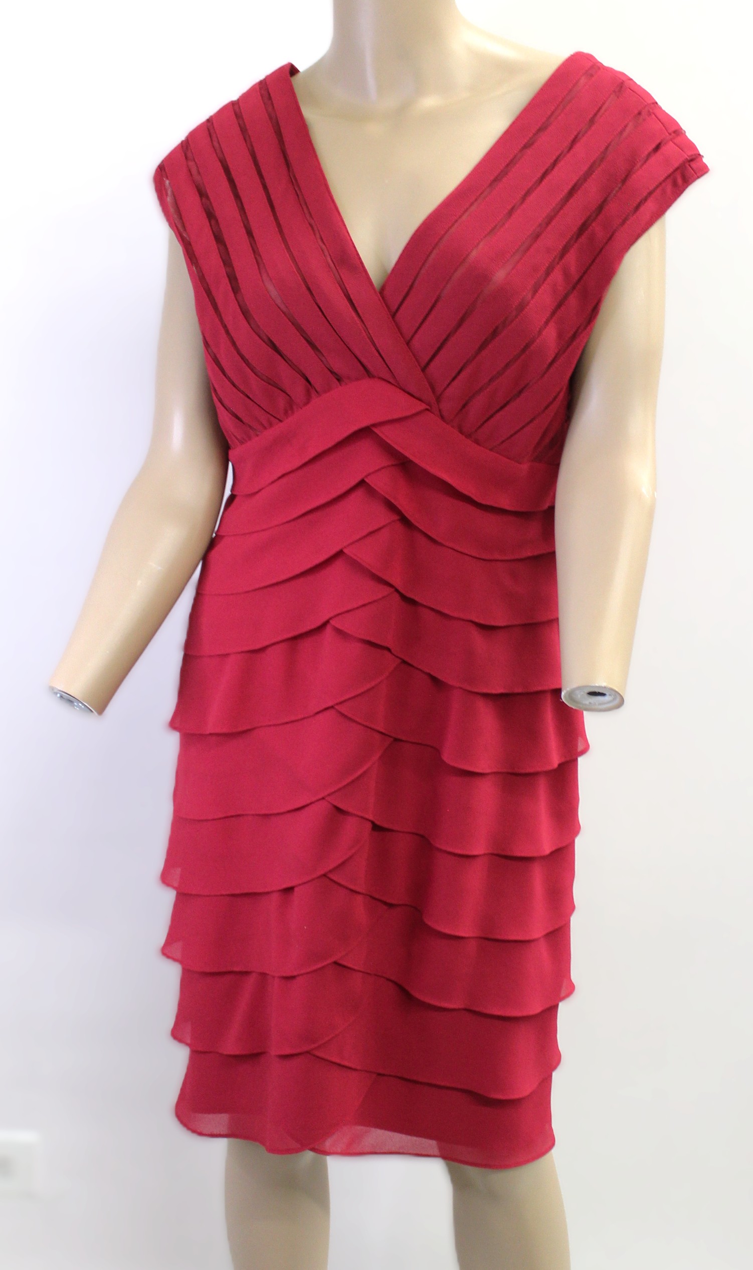 V neck in Both Front & Back,Lines with Ruffle w/ also Sheer red strip