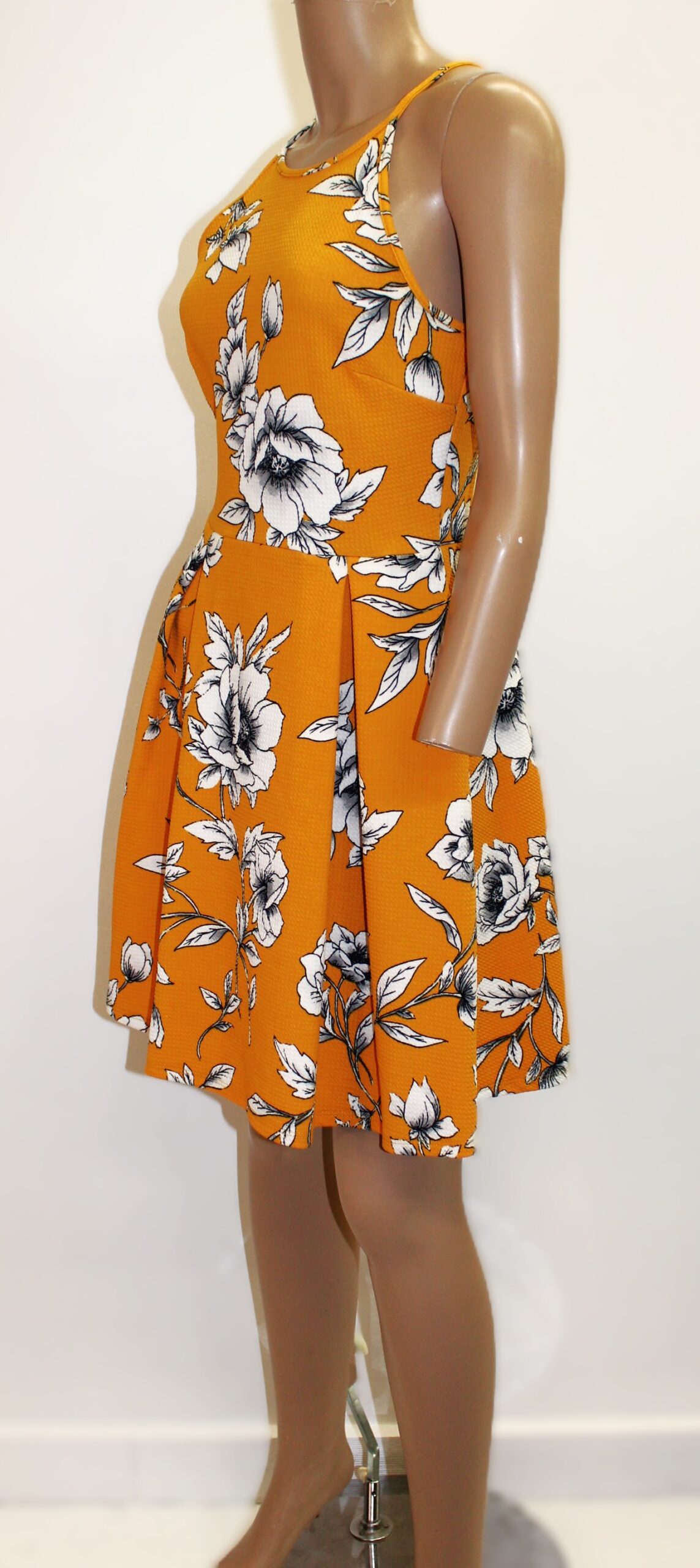 Soprano Vintage Orange w Floral Print Summer Dress Size S