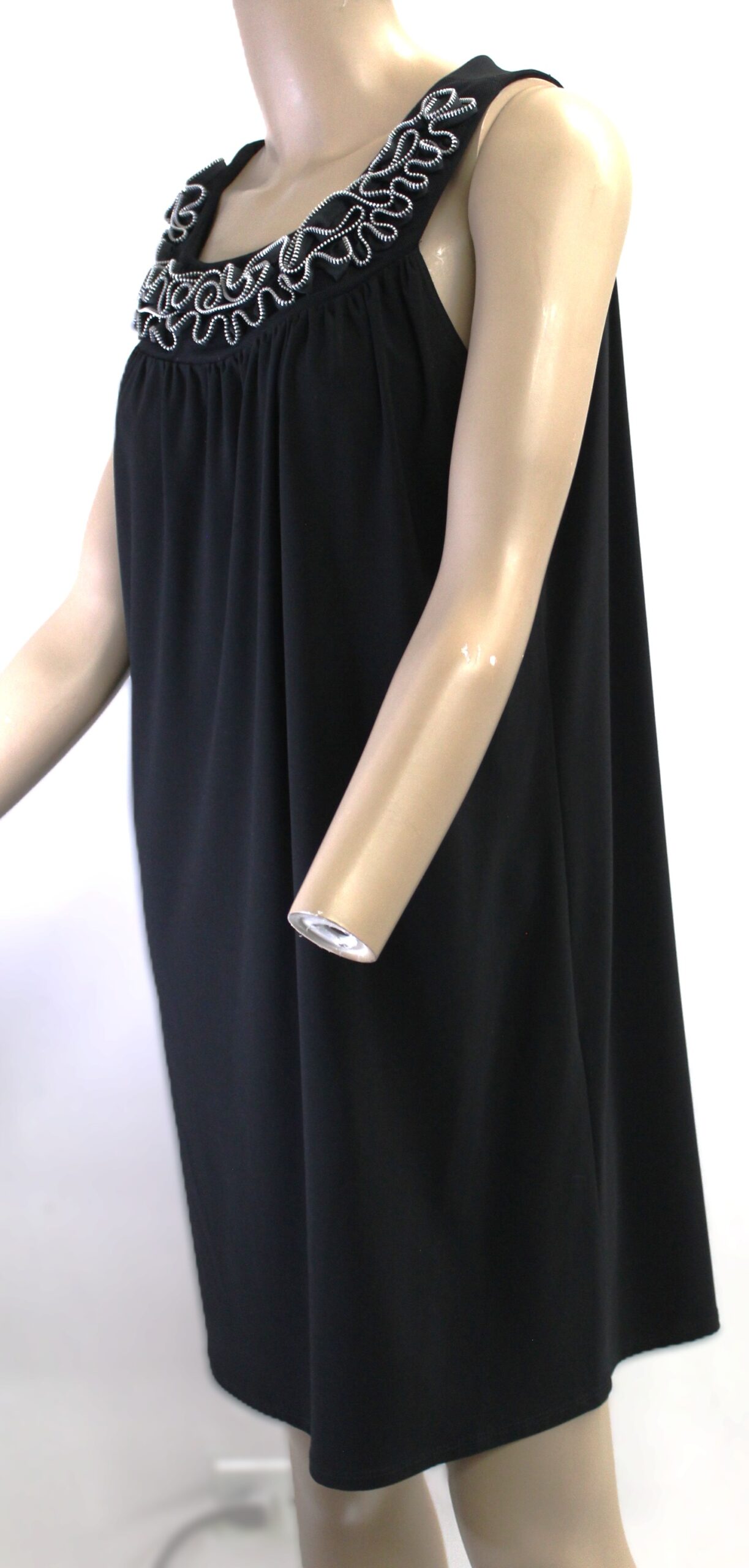 Sleveless, Collarless Round Neck, Unique Zipper Design