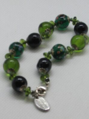 Vintage Stamped Plaisir D’Offrin Green Floral Glass Beaded Bracelet
