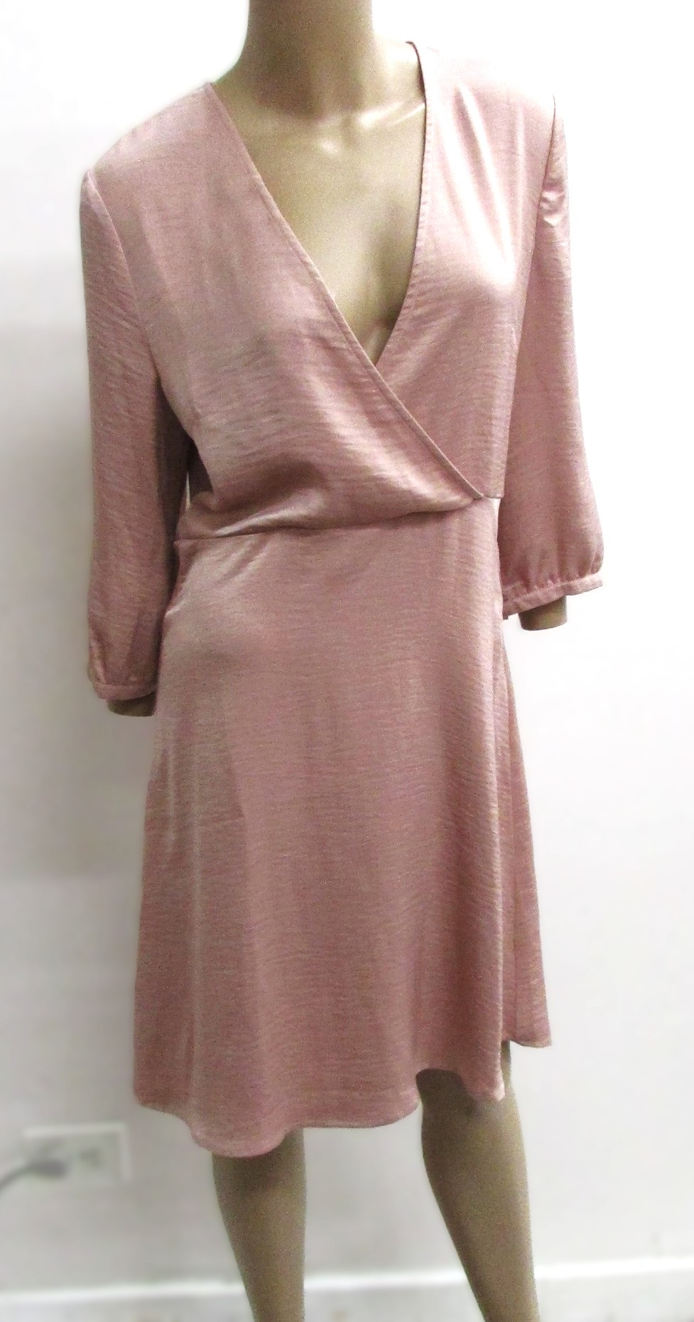 Vila Vintage Pink V-Neck Dress w Long Sleeves Size 9 (EU 40)