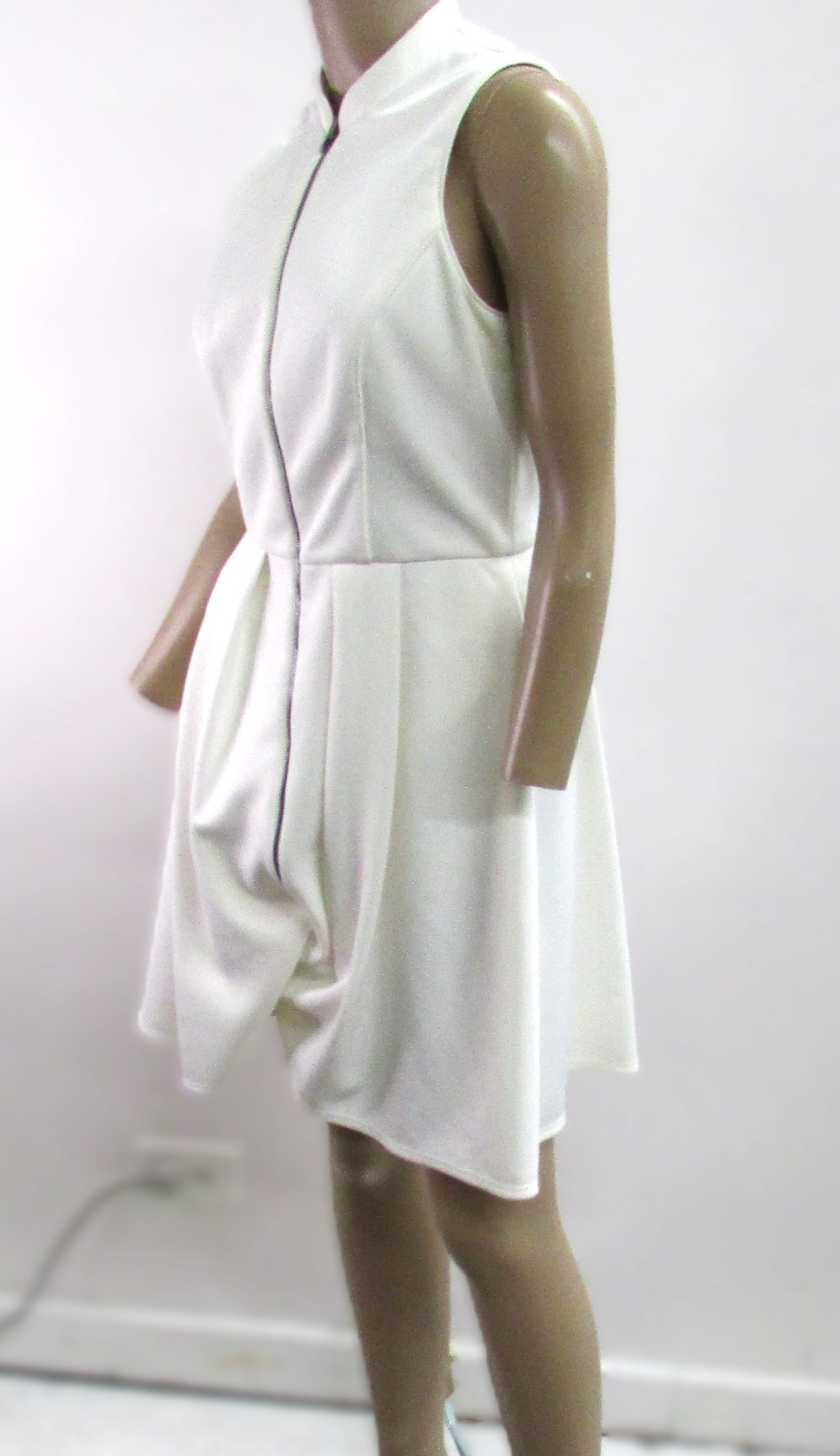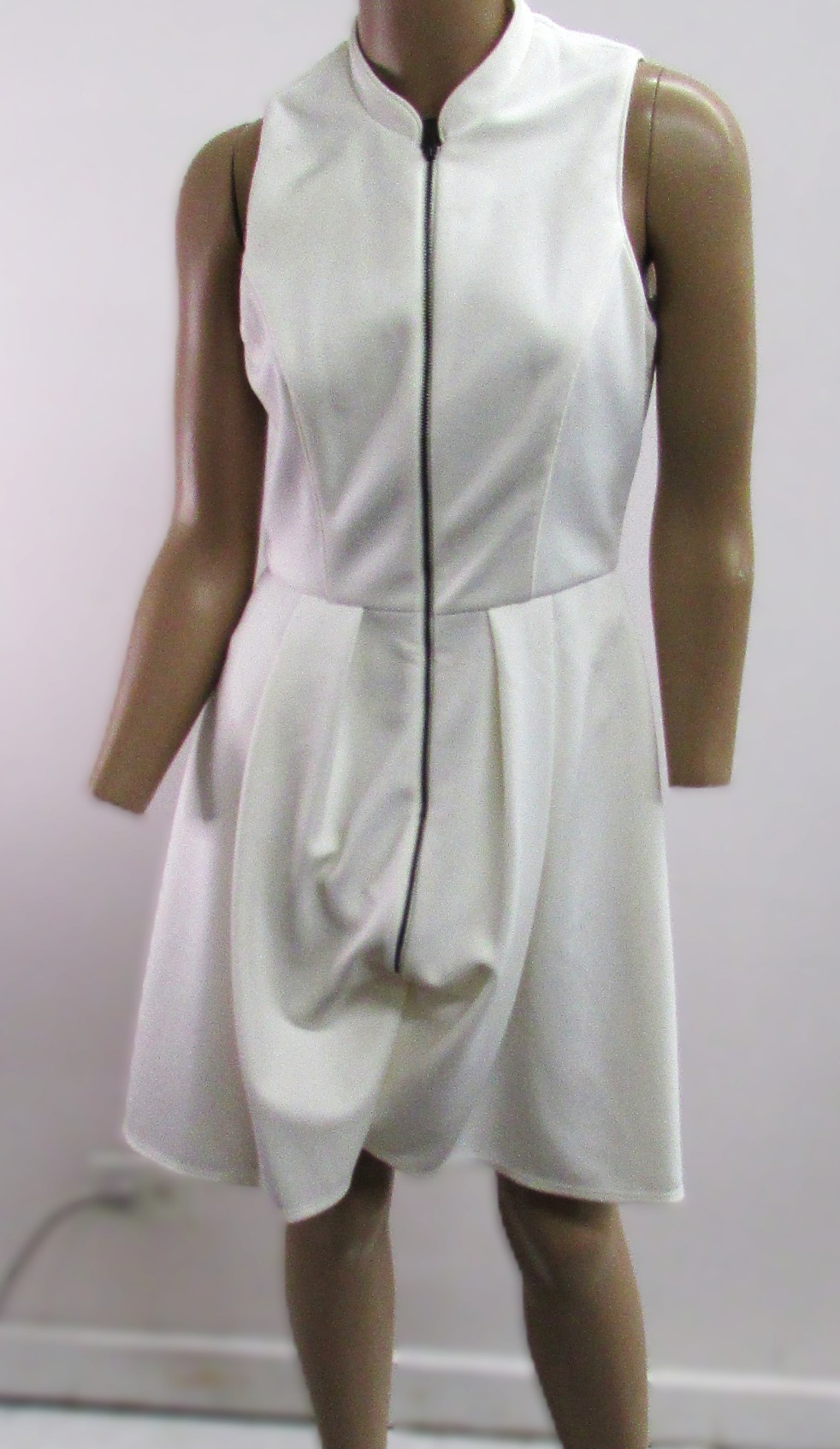 Vince Camuto Vintage White Dress w Pleated Skirt and Zipper Front Size 4