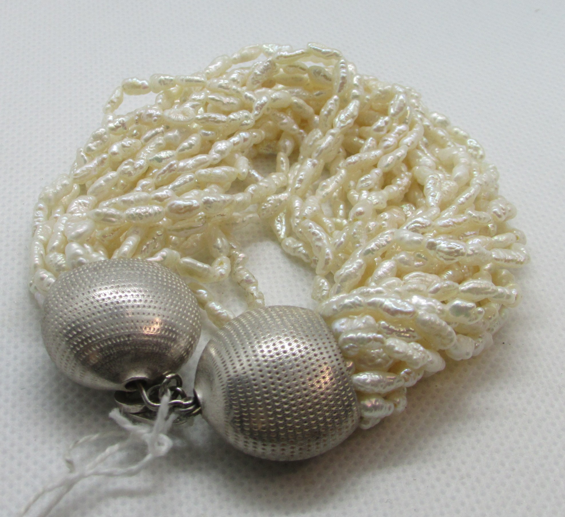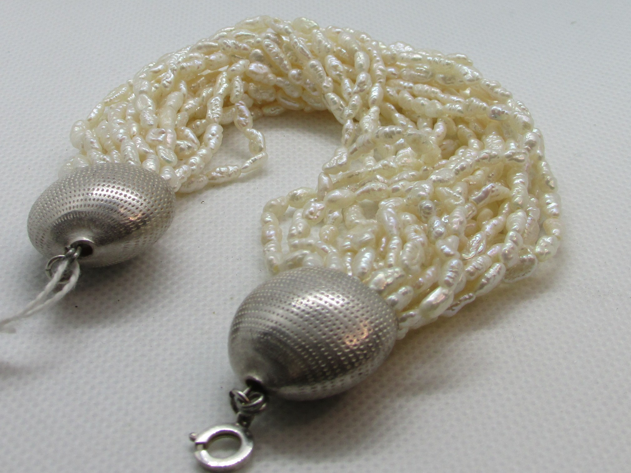 Vintage Fresh Water Pearl Multi Chain Bracelet w Silver Tips quantity