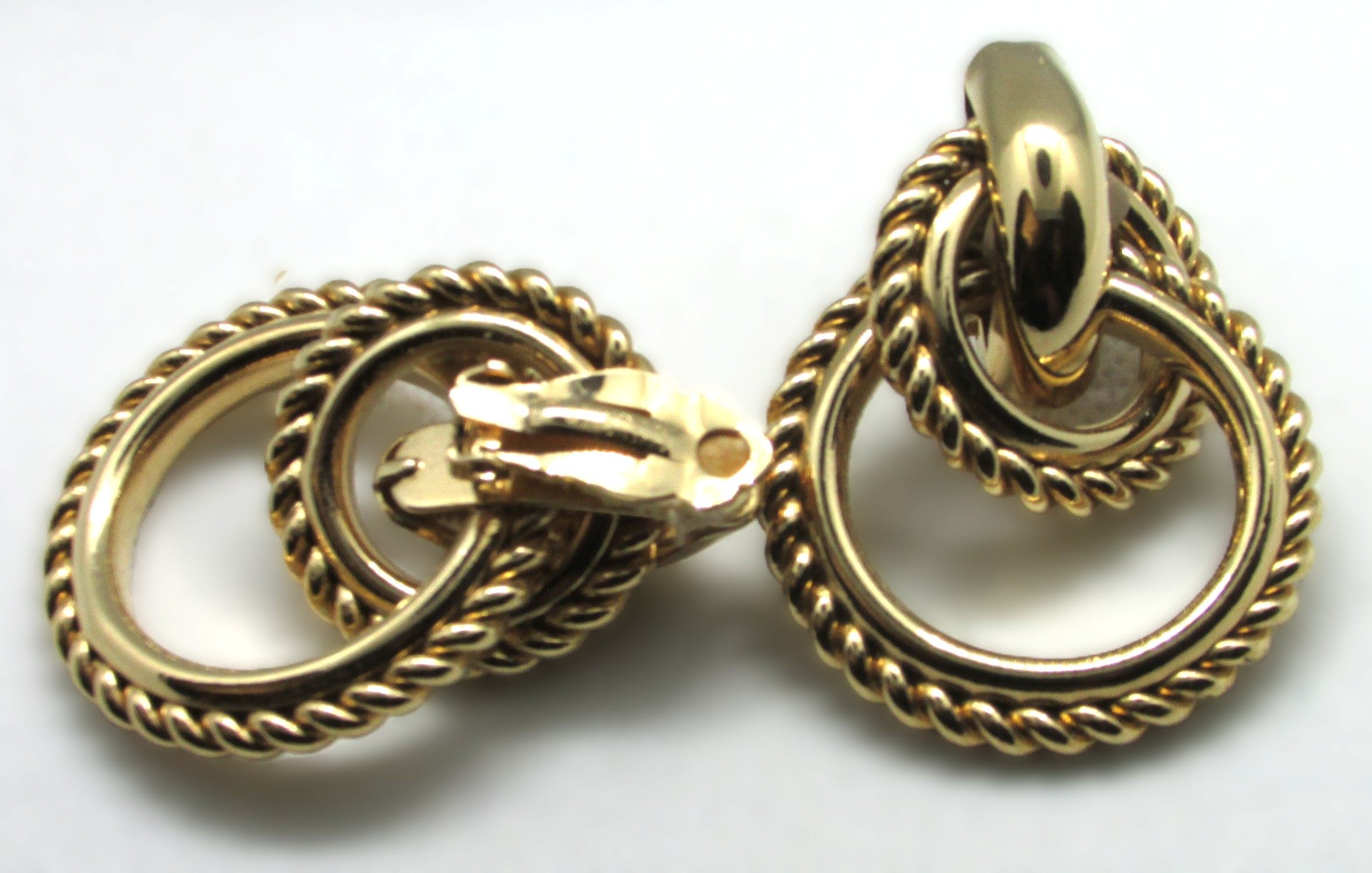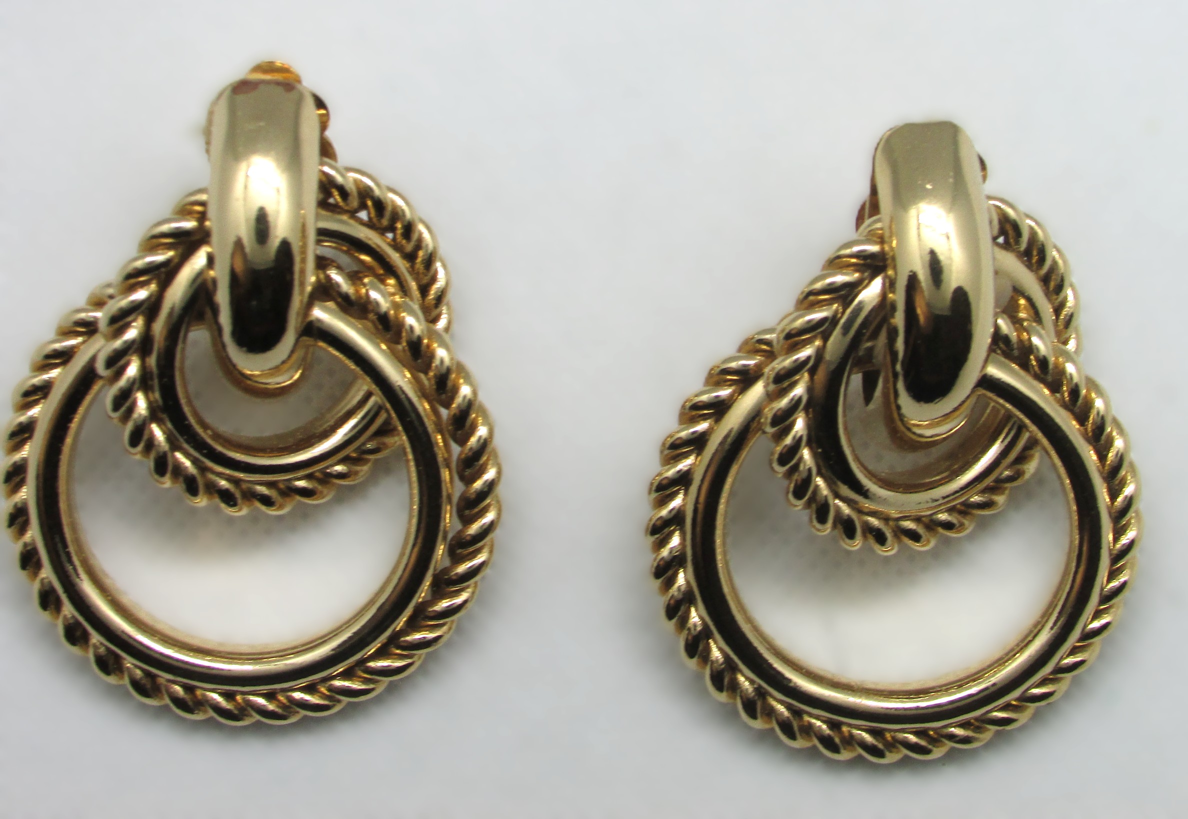 Vintage Signed Givenchy Yellow Gold Plated Doorknocker Style Clip On Earrings