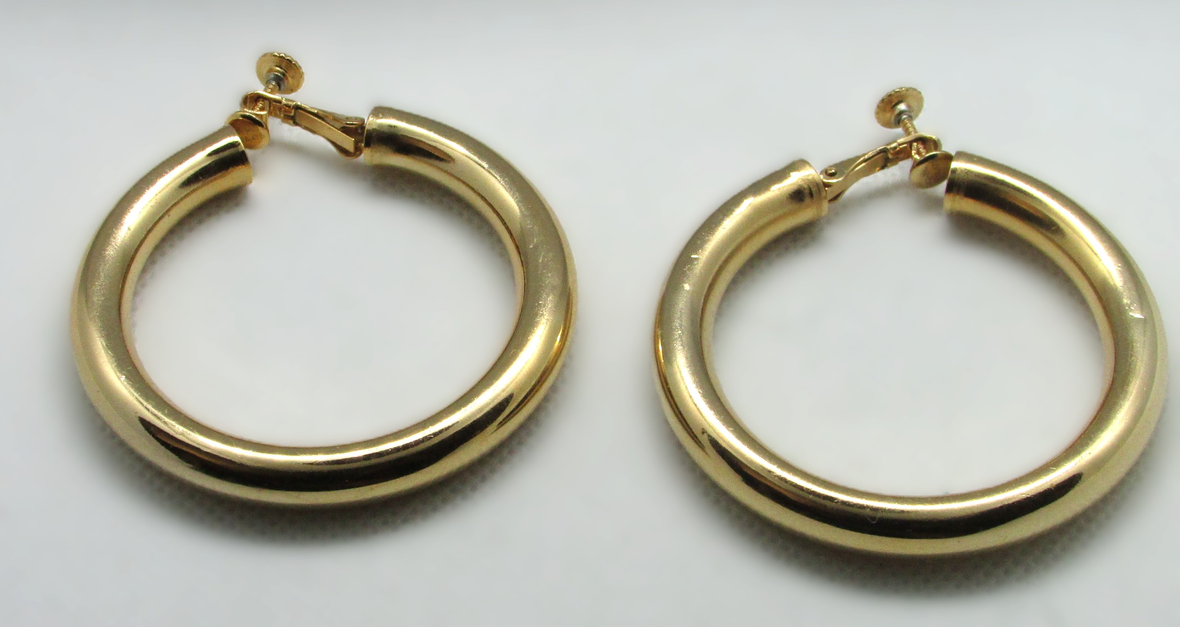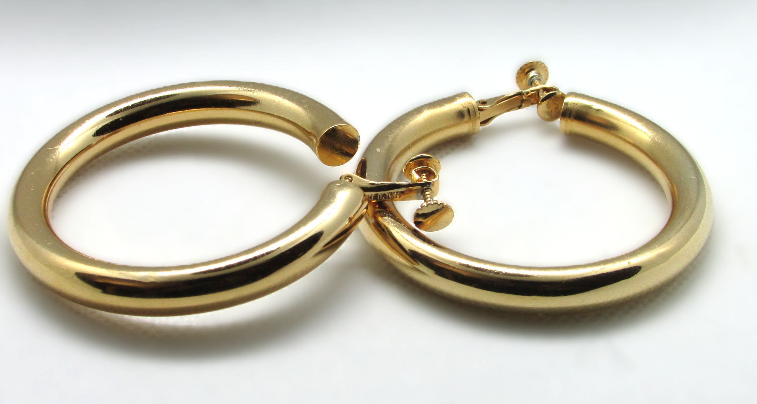 Vintage Stamped Napier Hollow Gold Hoop Clip On earrings w Twist Closure
