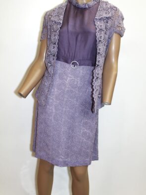 Hanshin13 Vintage Lilac 2 Piece w Sleeveless lace dress & Open Jacket Size S