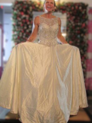 Angelina Faccenda Ivory White Gold Beaded Gown Size 8 – damaged