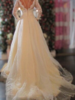 Jasmine Ivory Long Sleeve Lace Gown Size 8