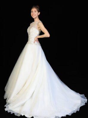 Mori Lee Madeline Gardner Ivory Chiffon Jeweled A-Line Bridal Gown Size 4